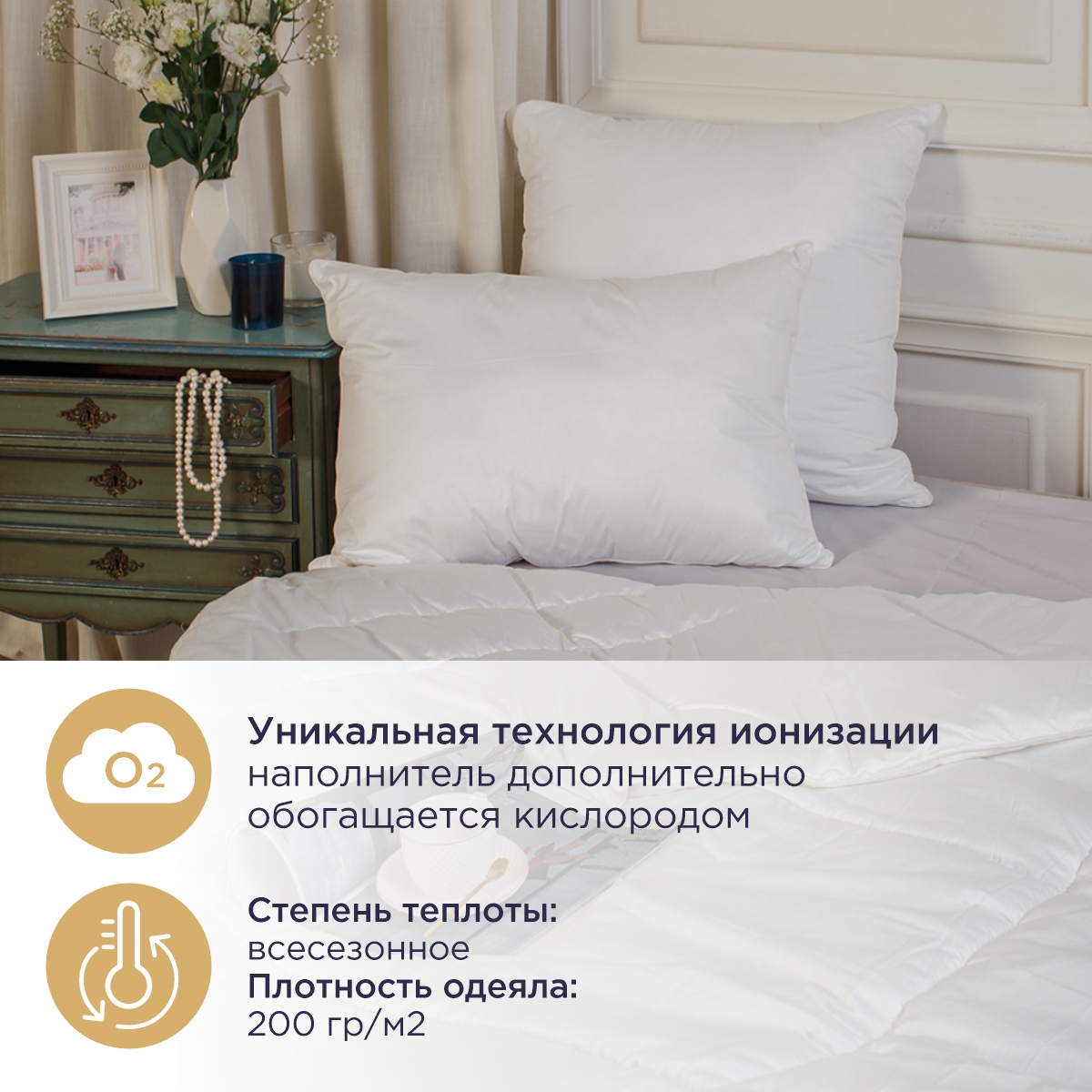 AirBalance - это уникальная технология ионизации, наполнитель дополнительно обогащается кислородом. Эта технология препятствует комкованию и слеживанию одеяла, оставляя изделие воздушным, упругим и пушистым на весь период эксплуатации.