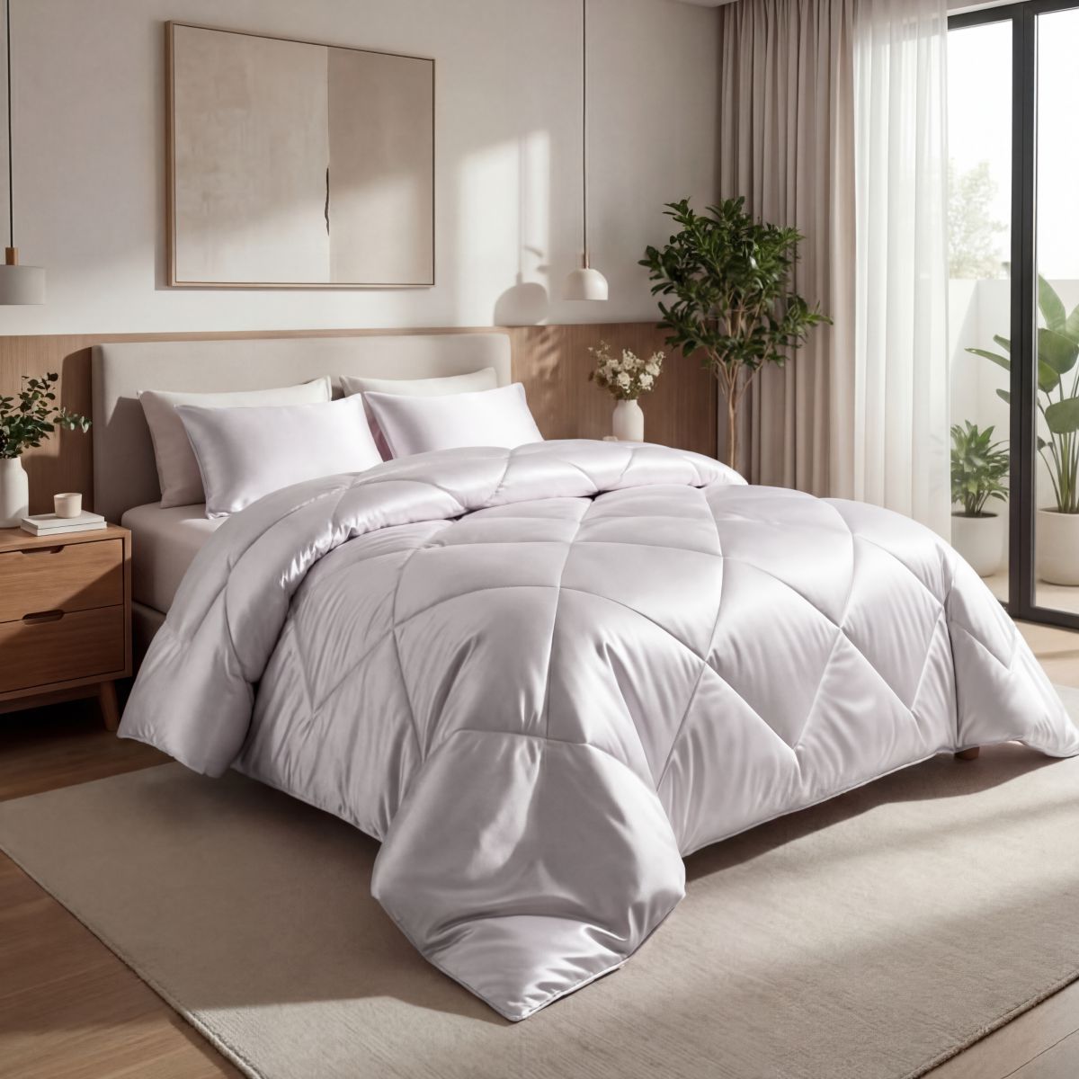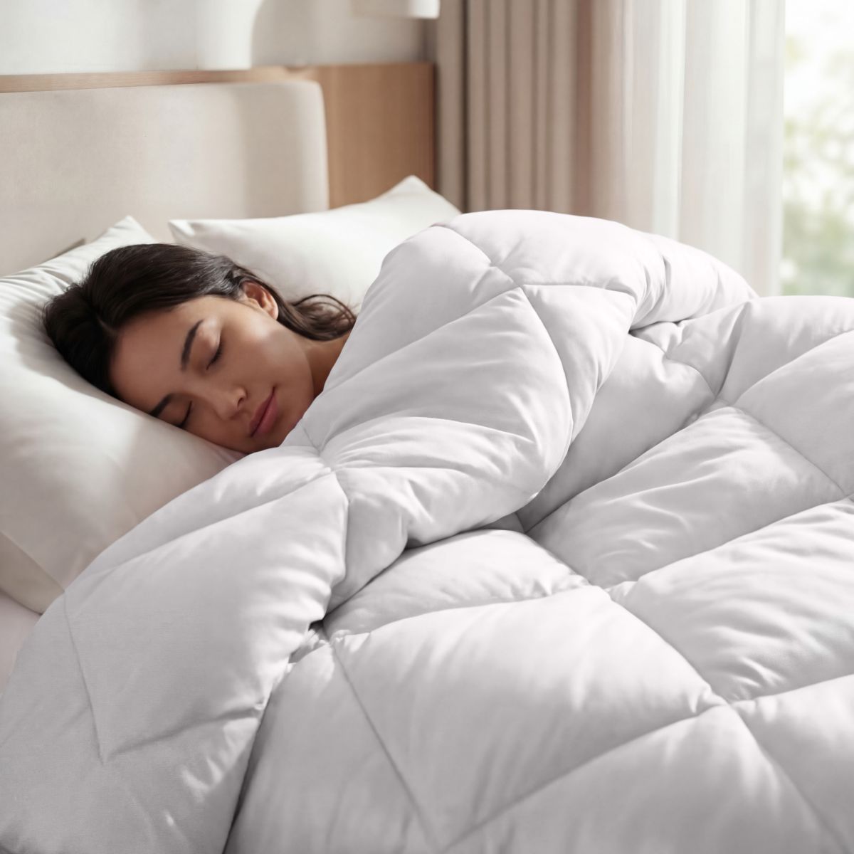 Благодаря объемному наполнителю одеяло обволакивает приятной тяжестью, создавая эффект антистресс-объятий, тем самым помогая полноценно расслабиться и быстрее заснуть.