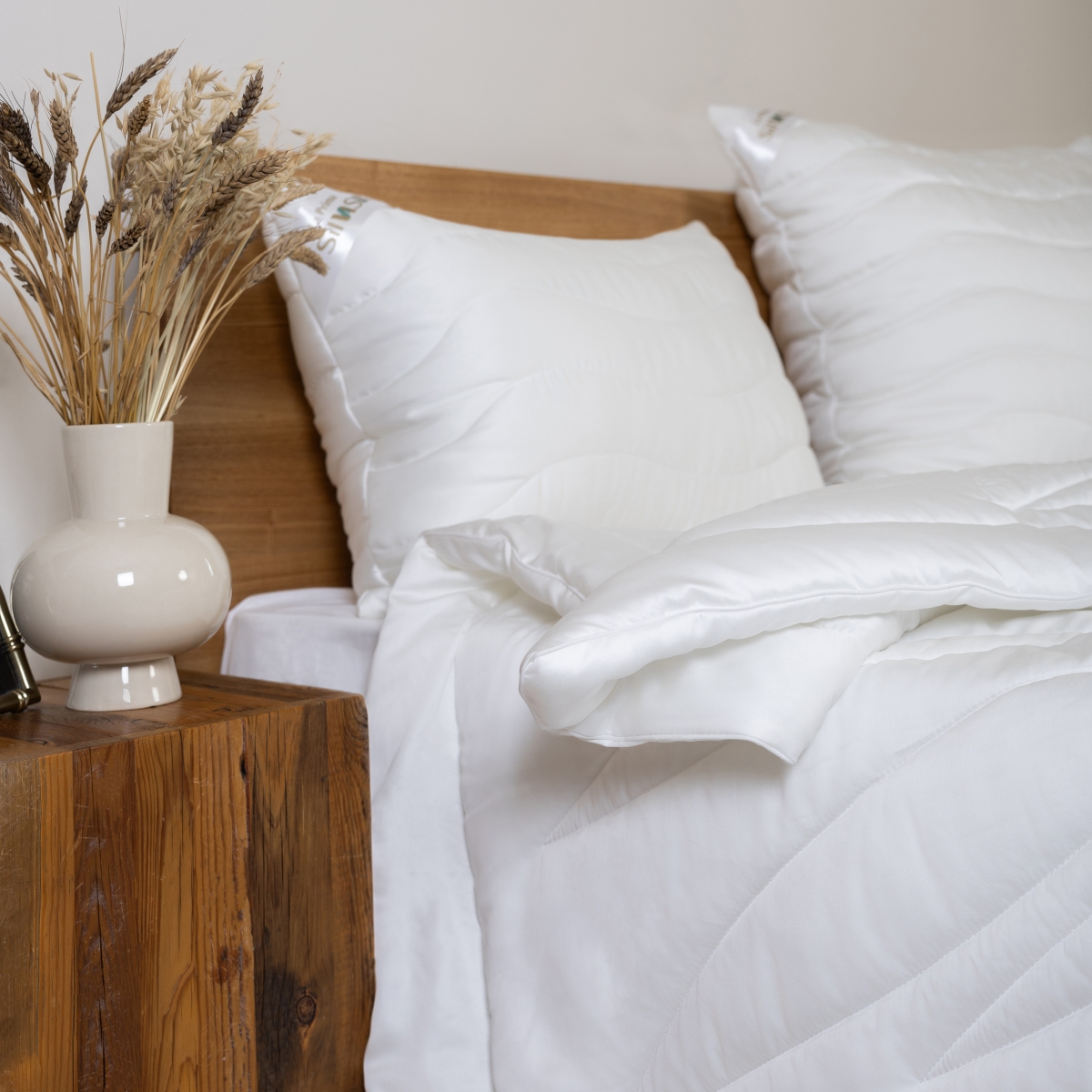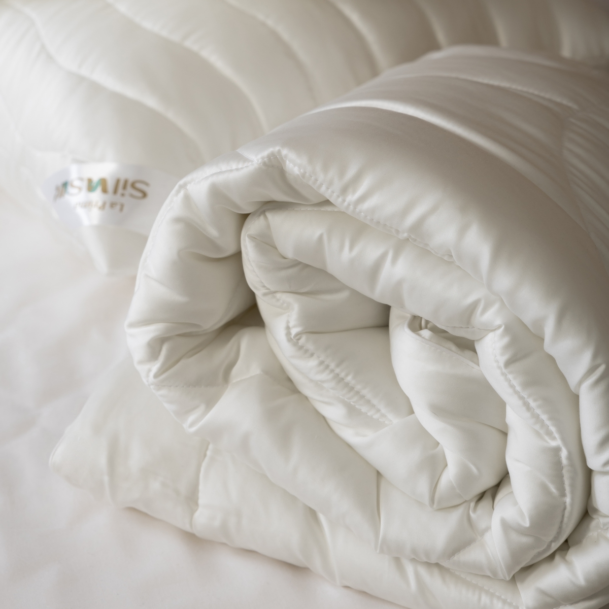 Почувствуйте роскошь заботиться о себе каждую ночь с премиальным одеялом SilvaSilk из уникальной ткани 100% лиоцелл с коллагеном в сочетании с наполнителем из 100% NanoSilk.