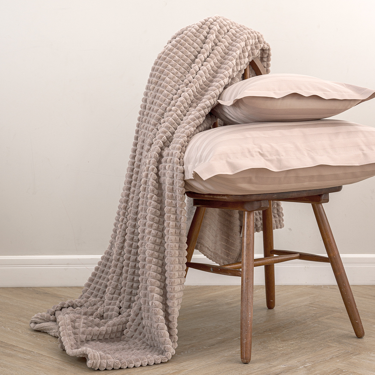 Плед Капучино, теплый и, по-настоящему, вкусный оттенок, он создает положительные ассоциации, придает помещению элегантный вид. Нежный кофейно-молочный оттенок помогает создать атмосферу тишины, покоя, он всегда актуален и популярен, кроме того, он отлично сочетается с различными стилями.