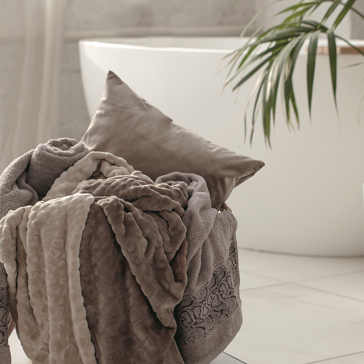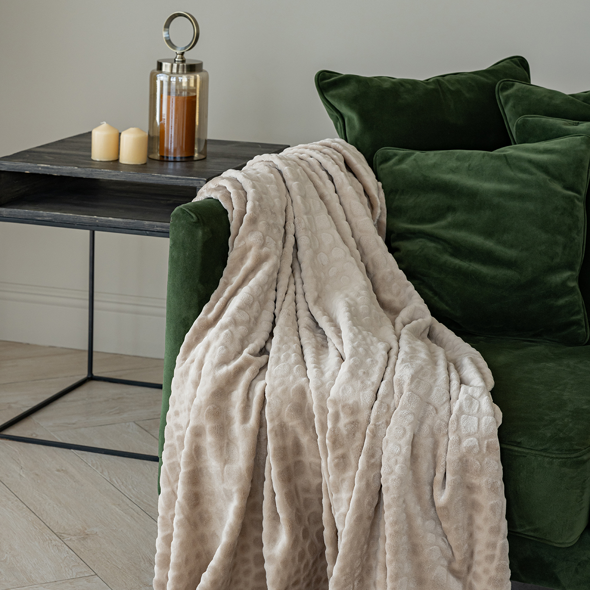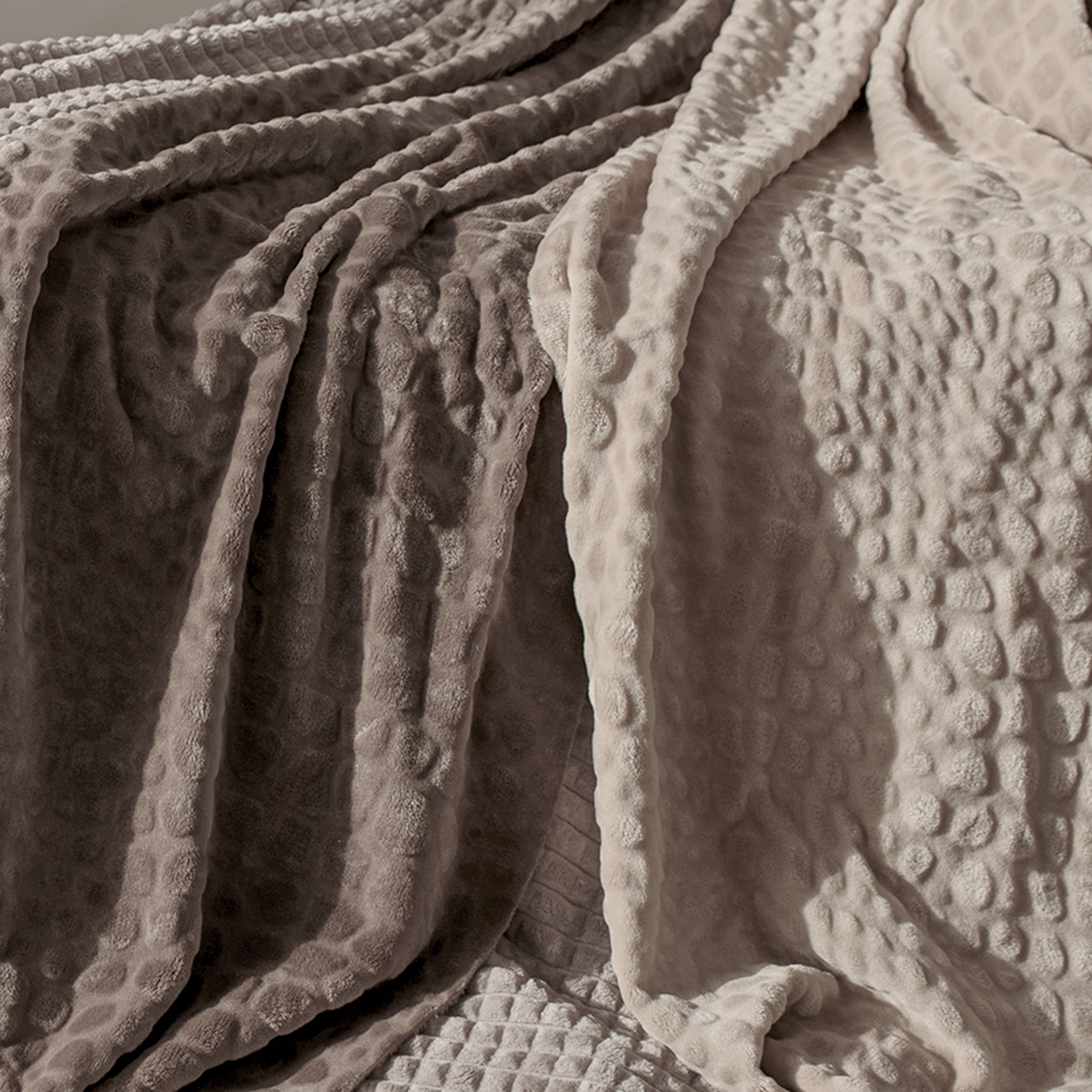 Плед серо-бежевого цвета — это классика, он делает обстановку мягкой, приятной и чувственной. В полумраке серо-бежевый становится загадочным и таинственным, а при ярком свете этот восхитительный оттенок кажется торжественным и нарядным.