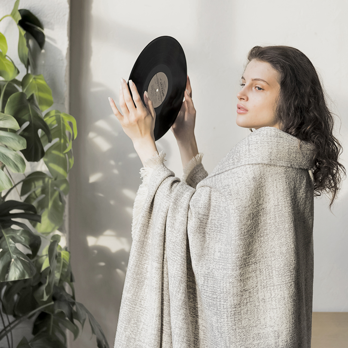 Плед декорирован лентой и фирменным вкладышем.