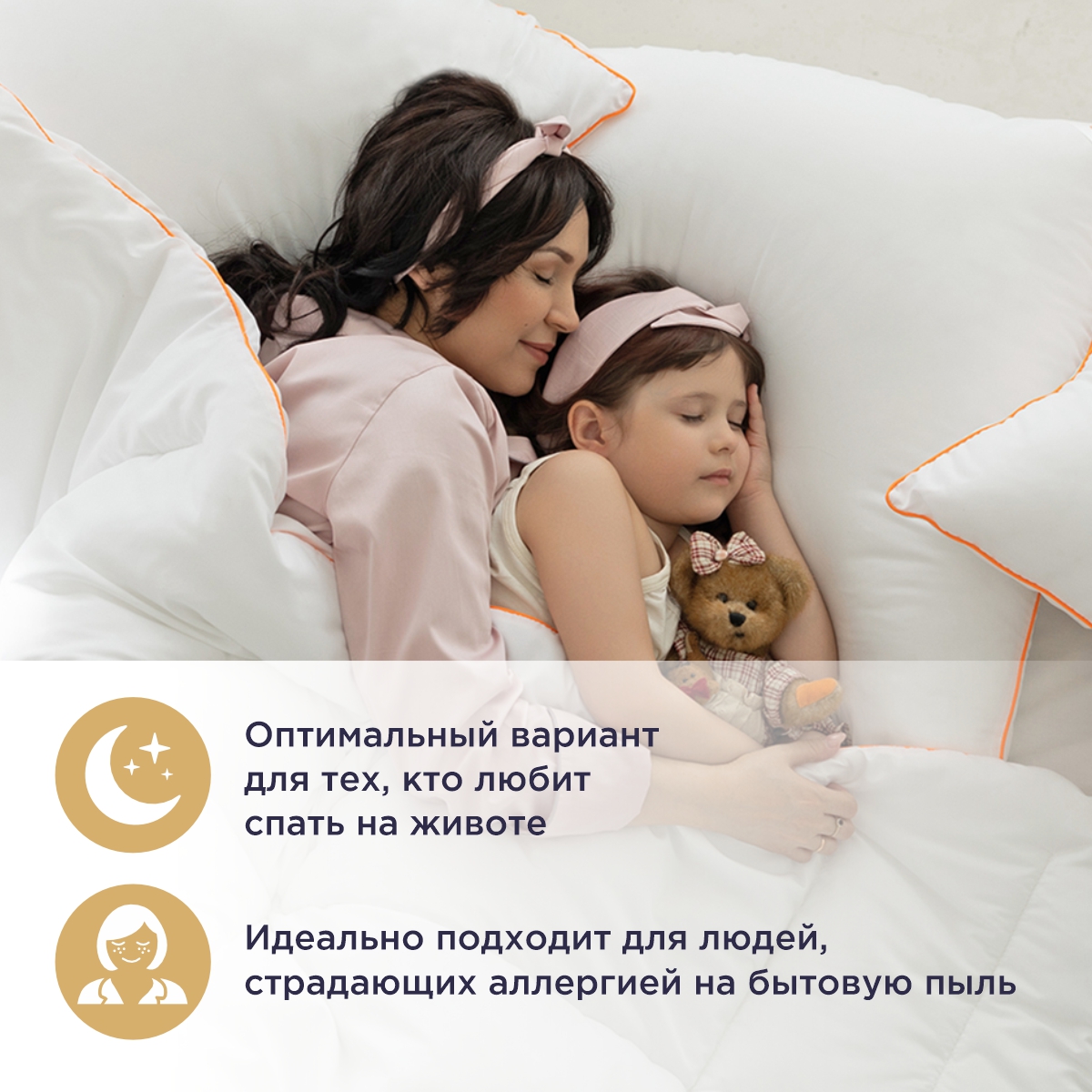 • Обеспечивают абсолютный комфорт и более глубокий сон благодаря удивительно приятной soft touch фактуре ткани и мягкому и воздушному наполнителю.