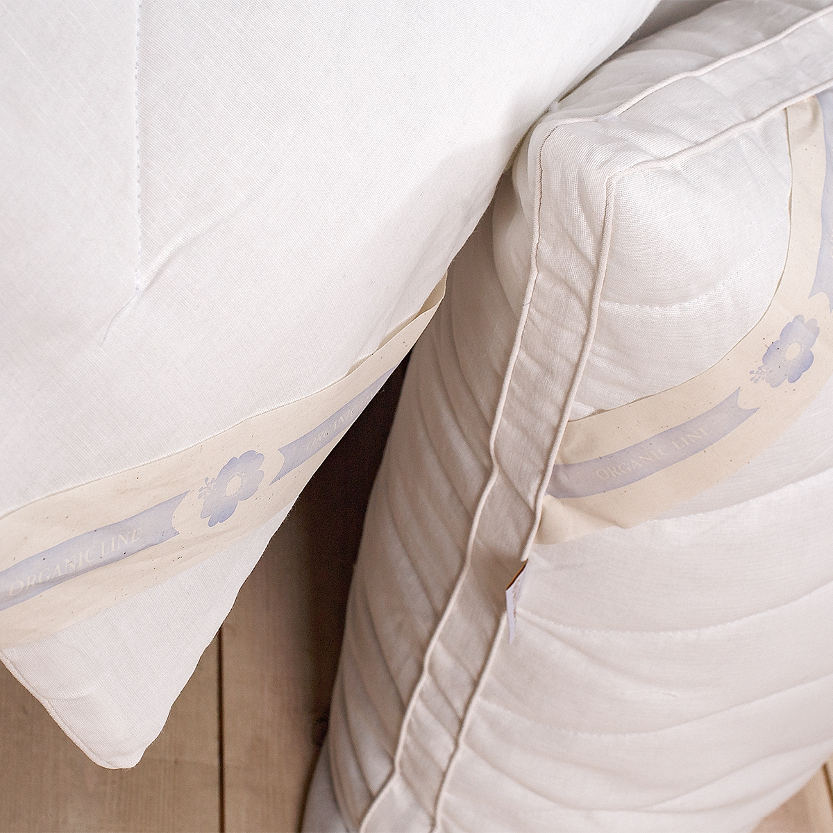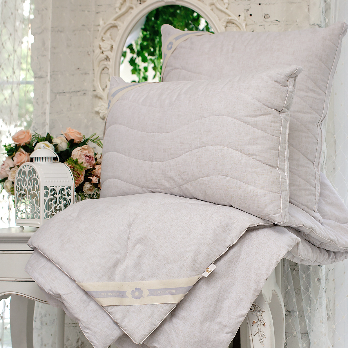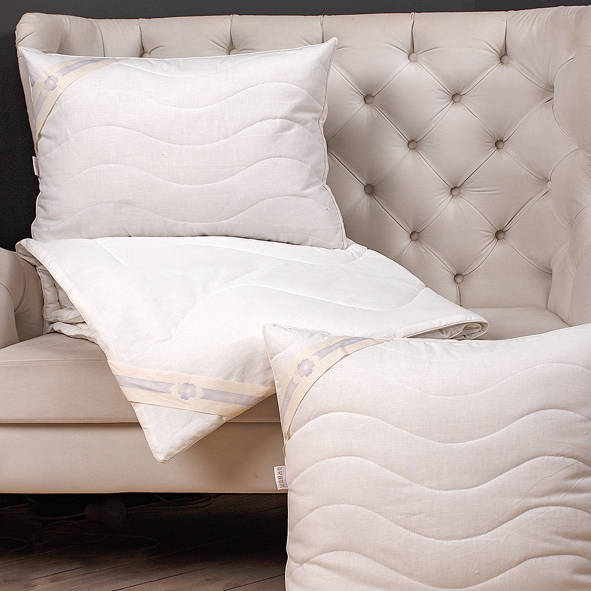 - Льняные волокна пронизаны воздухом, который легко циркулирует в подушках и одеялах, это препятствует чрезмерному перегреву во время сна.
