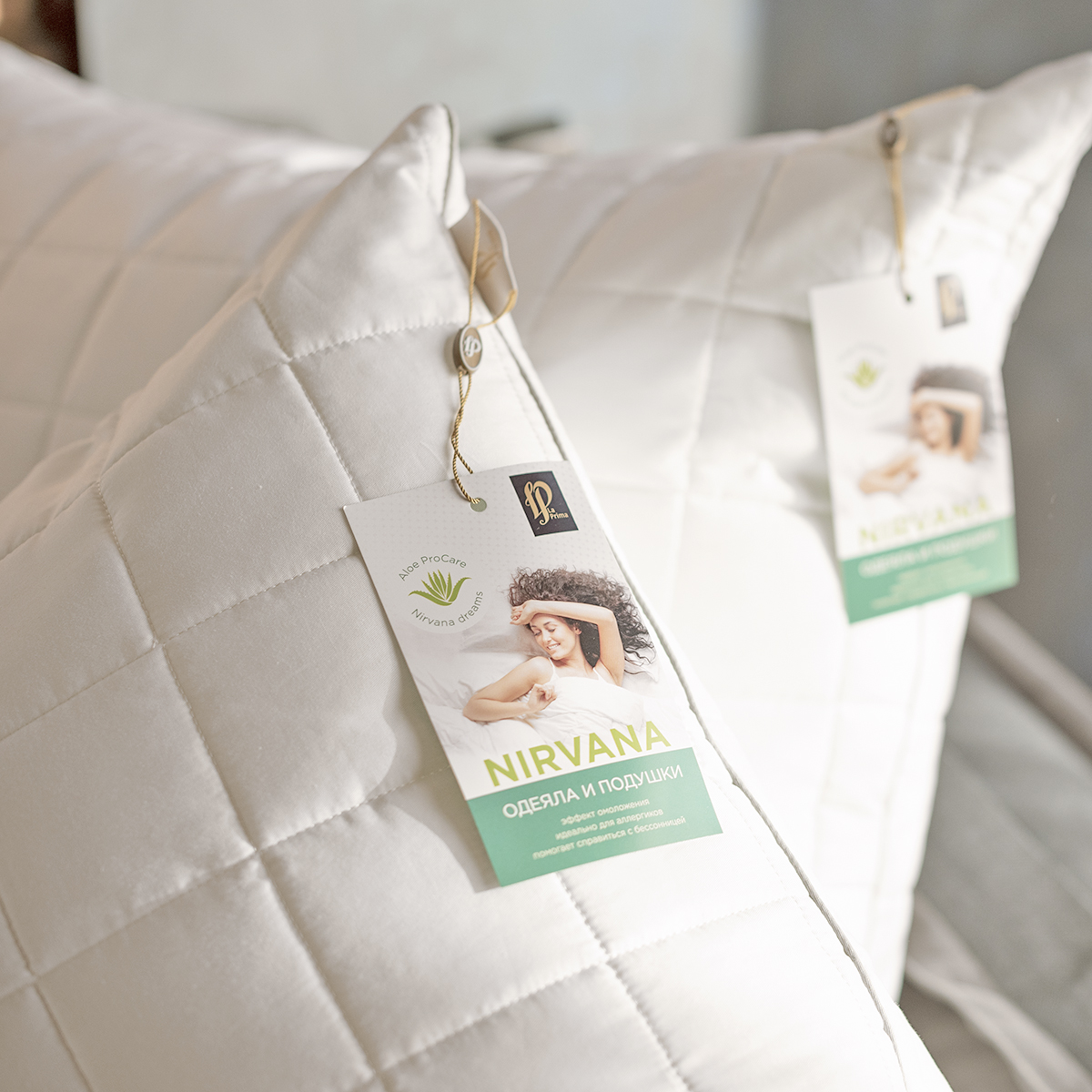 - Подушка создана для людей, испытывающих повседневный стресс и страдающих от бессонницы: отдых на изделиях NIRVANA снимает эмоциональное напряжение и стимулирует выработку гормона сна – помогает заснуть быстрее, ваш сон - более спокойный, глубокий и непрерывный.