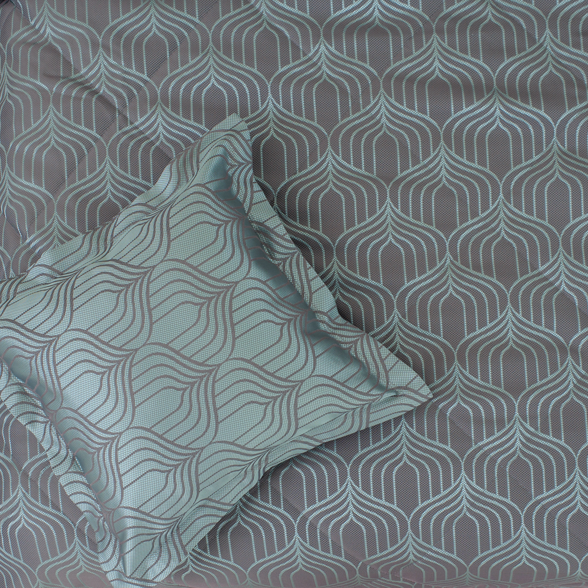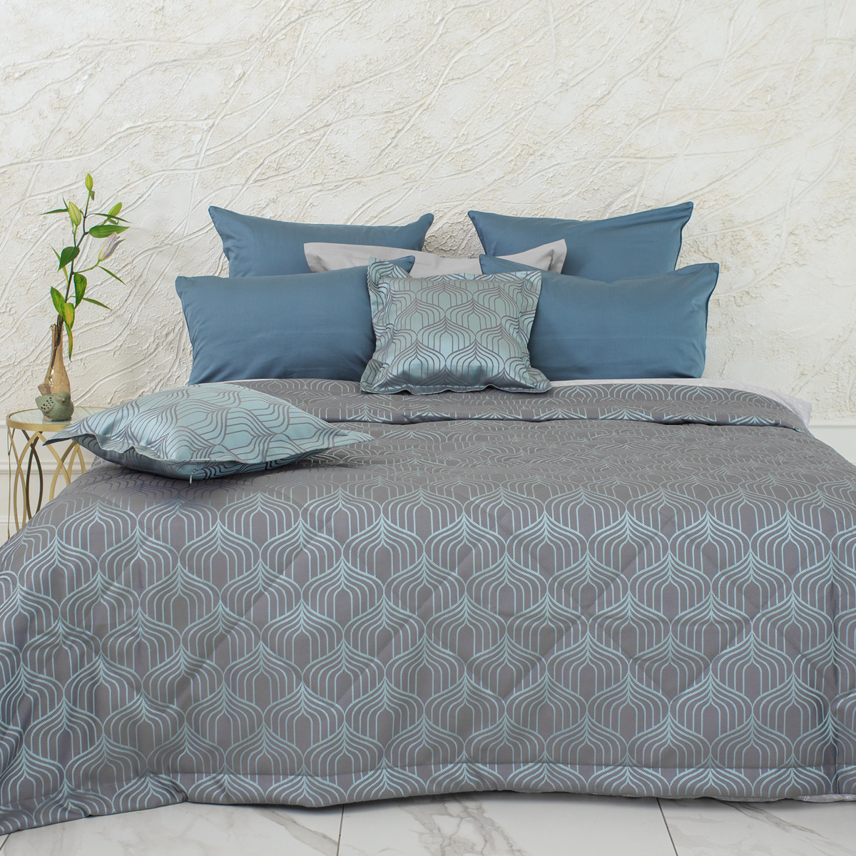 В комплект входит: стеганное покрывало на подкладе размер 240*260 см и 2 декоративные наволочки 45х45 см на молнии. Наволочки с четырех сторон декорированы ушками шириной 3 см.