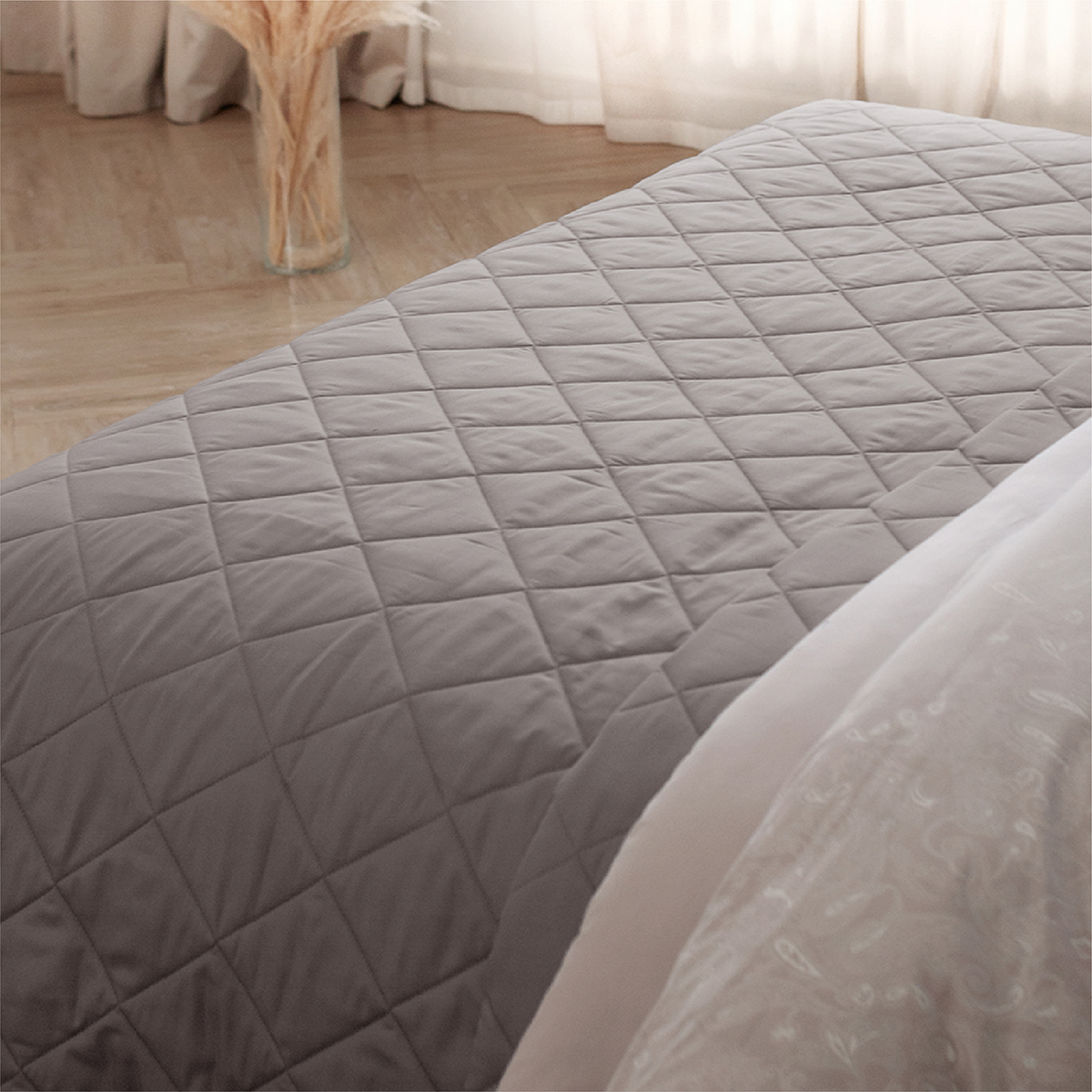 За покрывалом очень легко ухаживать, его можно стирать в стиральной машине. Покрывало стеганное практично: на хлопковой ткани не остается зацепок.