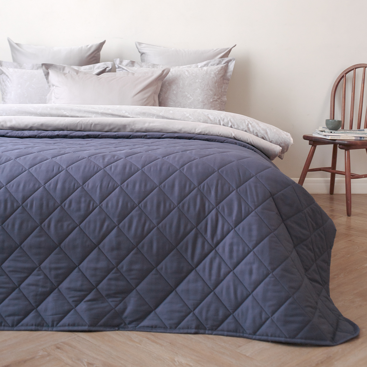 ОСОБЕННОСТЬ модели: хлопковое покрывало на кровать с закругленным уголком, практичной окантовкой по периметру изделия и стильной стежкой в виде ромбов. Верхняя и нижняя часть покрывала выполнены из высококачественного сатина - безопасного и натурального материала.