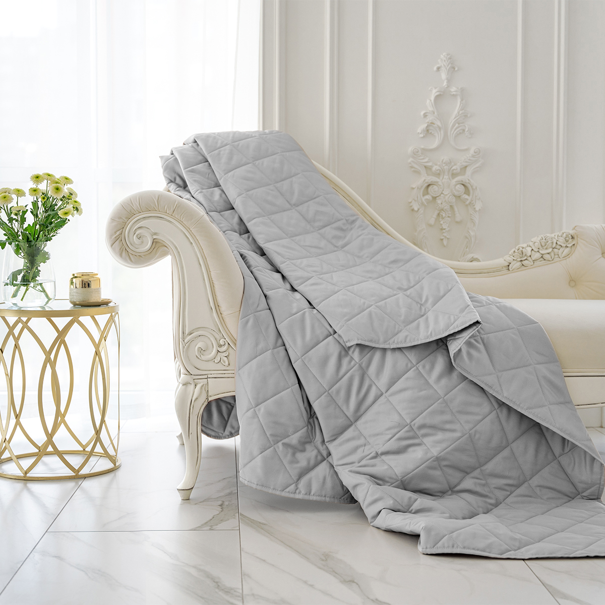 За покрывалом очень легко ухаживать, его можно стирать в стиральной машине. Покрывало стеганное практично: на хлопковой ткани не остается зацепок.