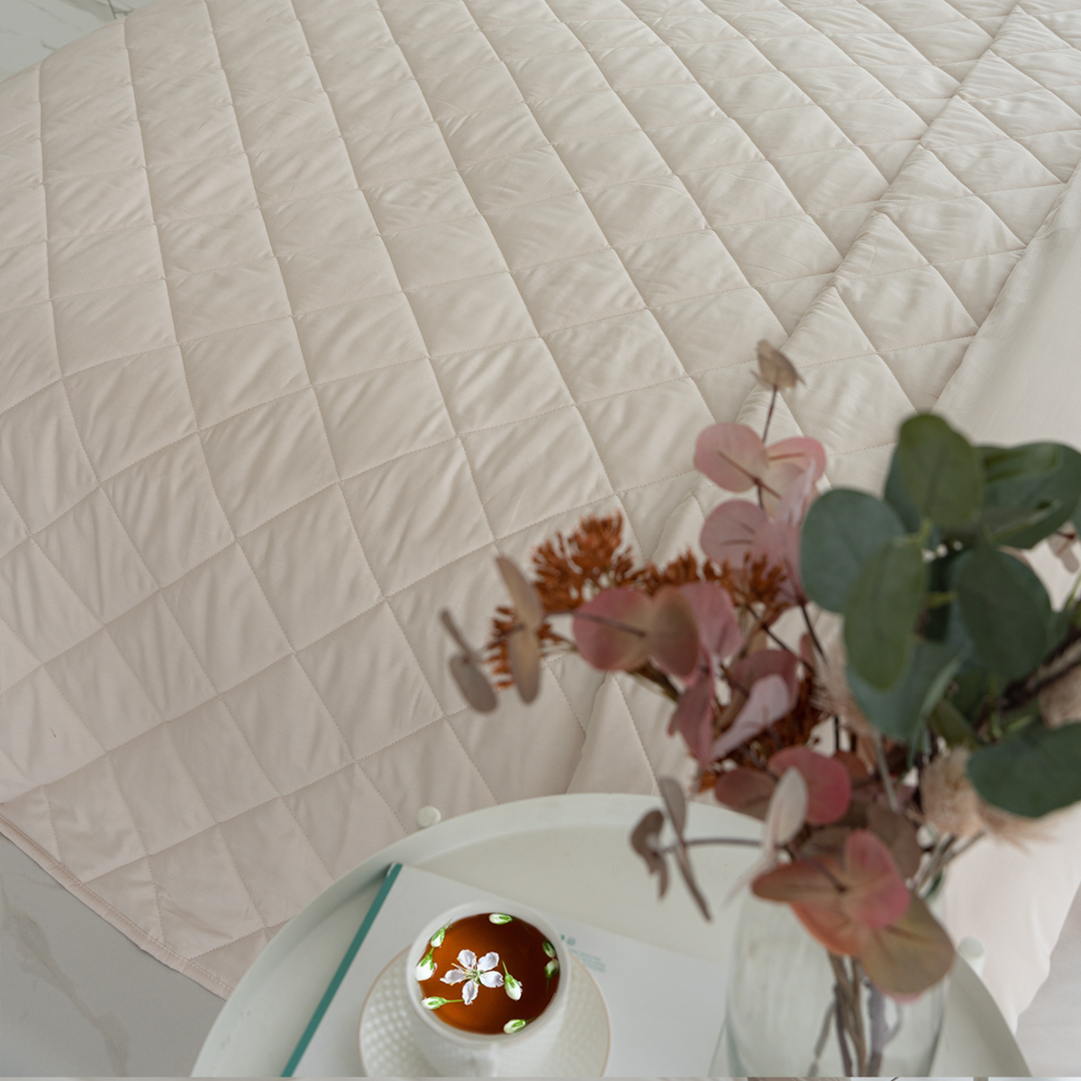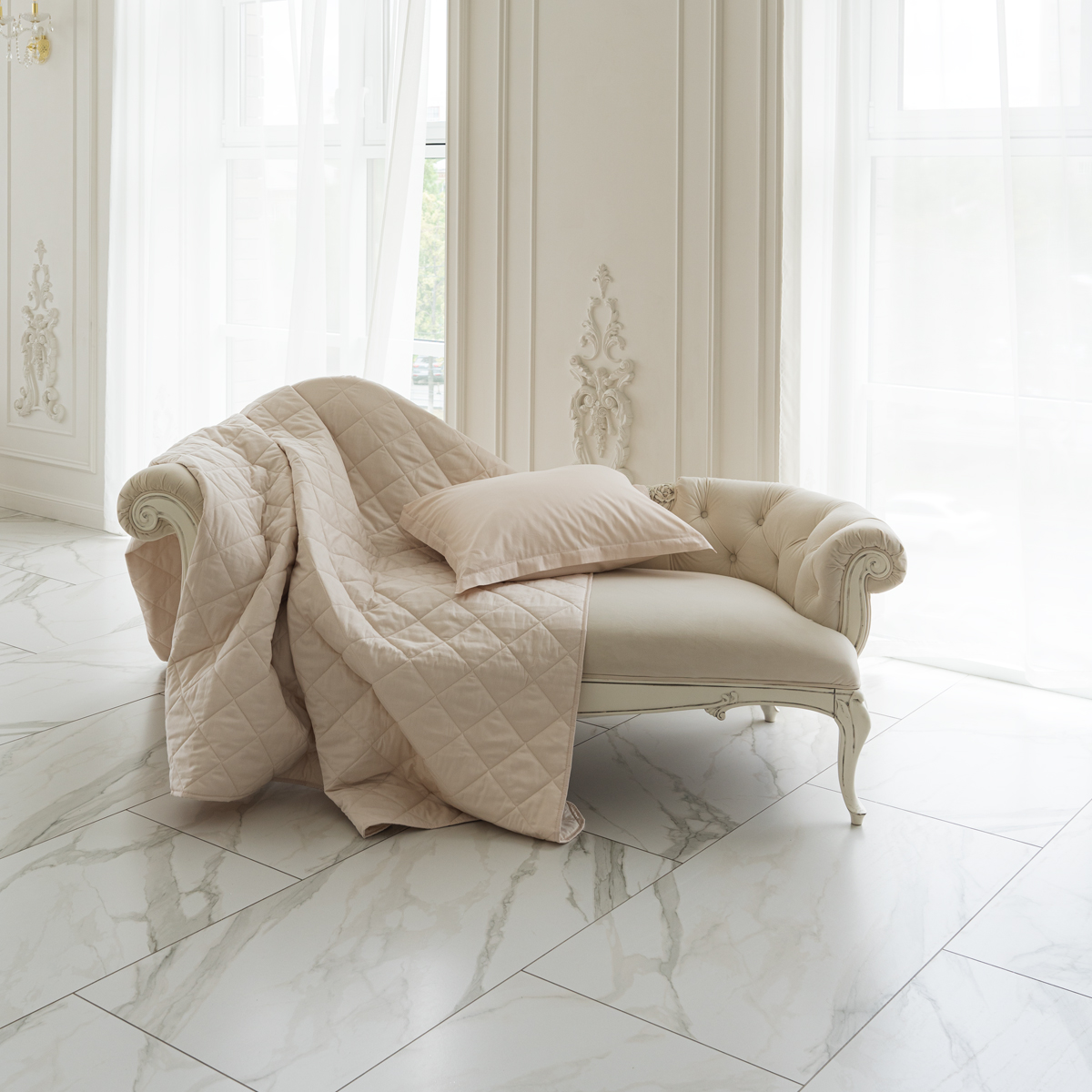 Покрывало стеганое практично: на хлопковой ткани не остается зацепок.