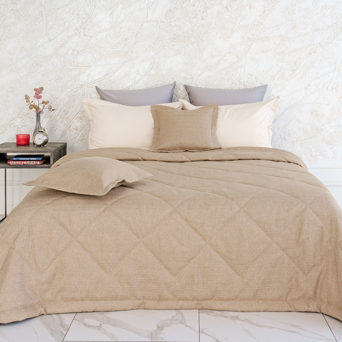 Покрывало на кровать Evelyn выполнено в 3х трендовых и натуральных оттенках. Они прекрасно подойдут тем, кто предпочитает спокойный и сдержанный стиль.