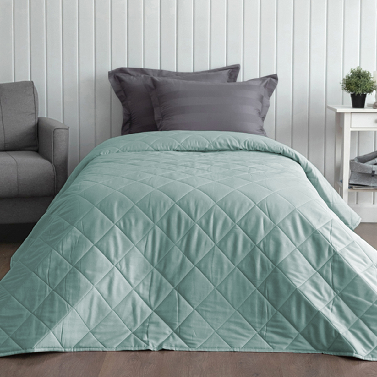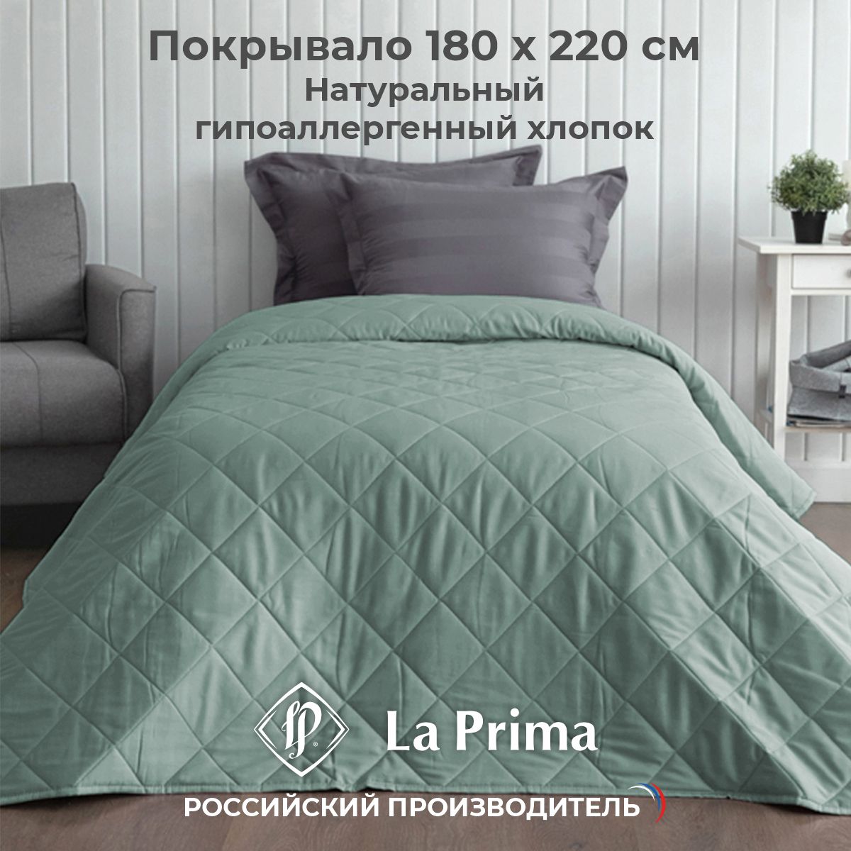 - Удобное решение для оформления интерьера в едином стиле - покрывала выполнены в тех же расцветках и из той же ткани, что и однотонное постельное белье La Prima.