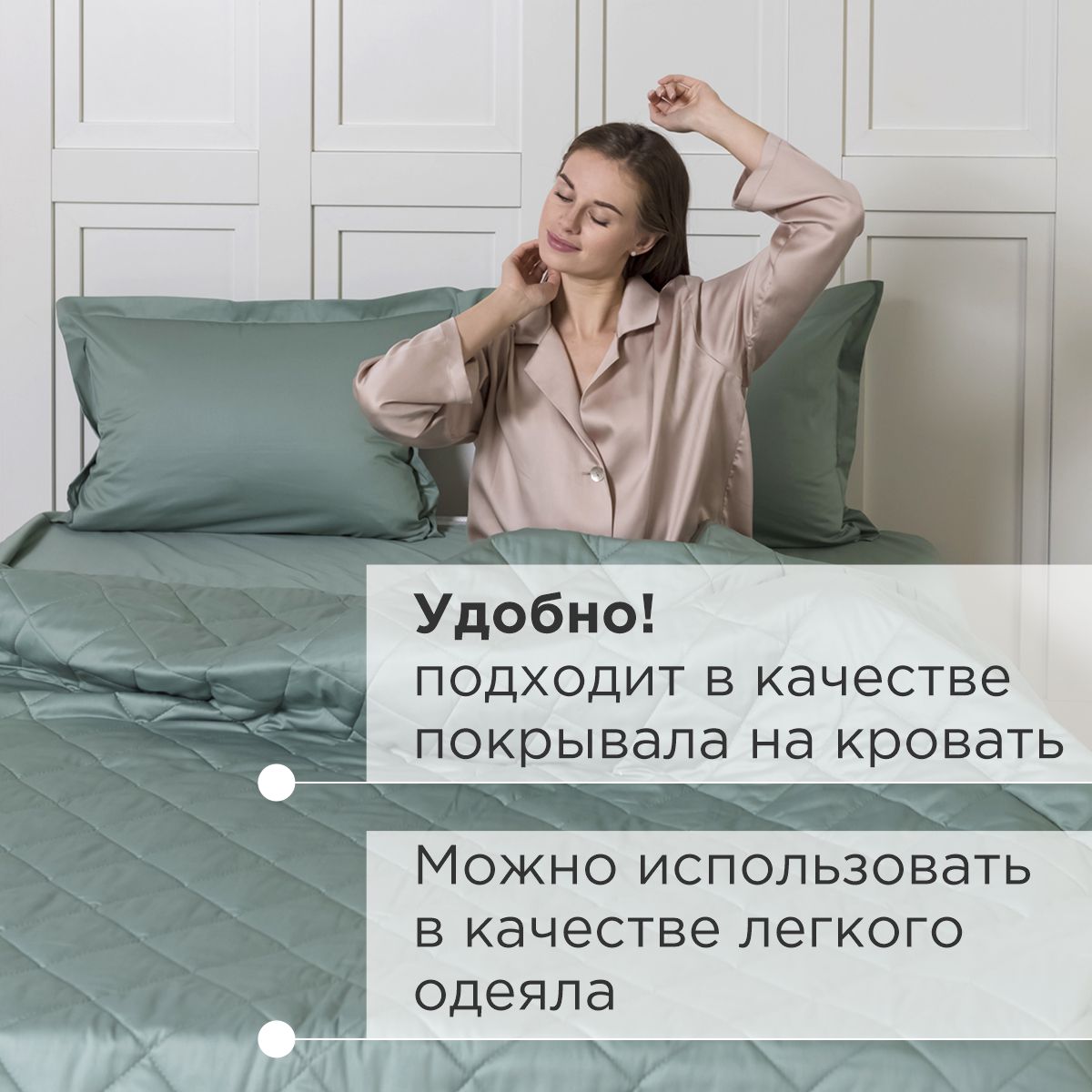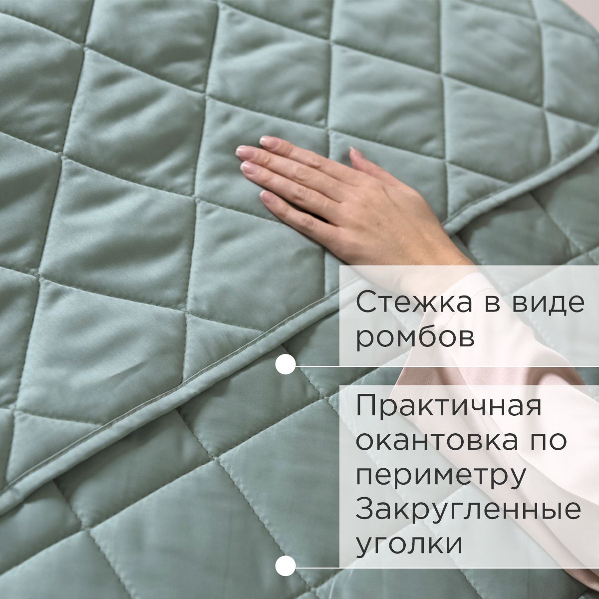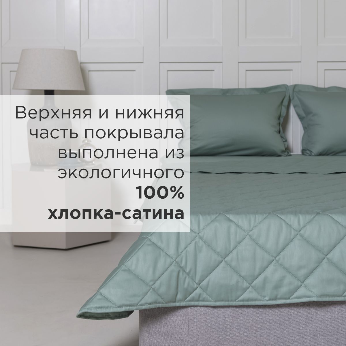 - Верхняя и нижняя часть покрывала выполнены из высококачественного сатина – безопасного, натурального и комфортного материала.