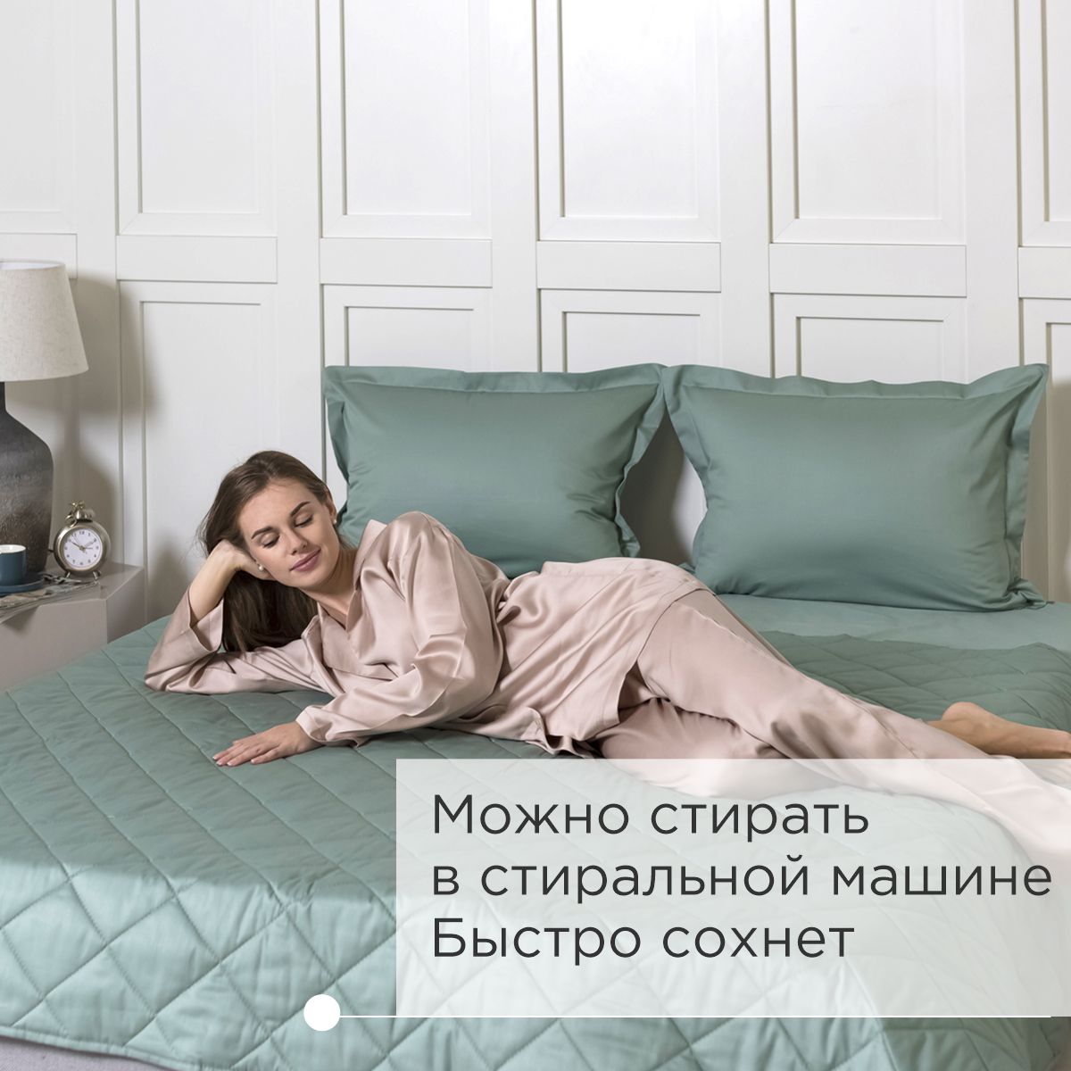 За покрывалом очень легко ухаживать, его можно стирать в стиральной машине. Покрывало стеганое практично: на хлопковой ткани не остается зацепок.