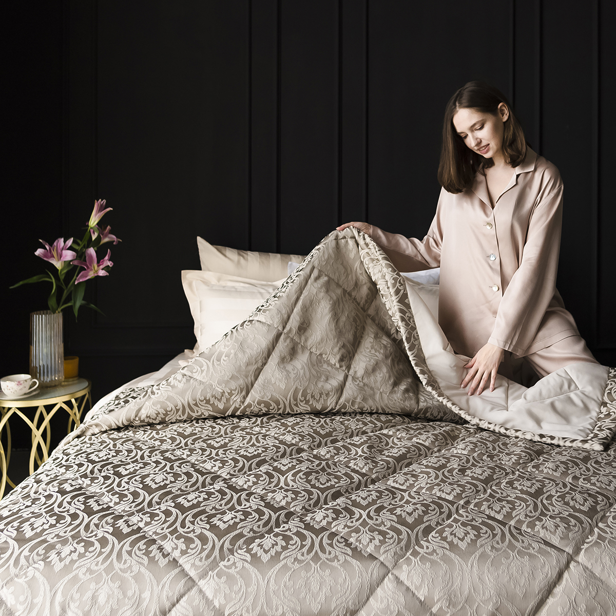 Новая коллекция жаккардовых покрывал Domiano- роскошная классика, богатые фактуры, нежные оттенки, утончённость исполнения. Это жемчужина декоративного искусства, которая привнесет нарядную ноту интерьеру спальни.