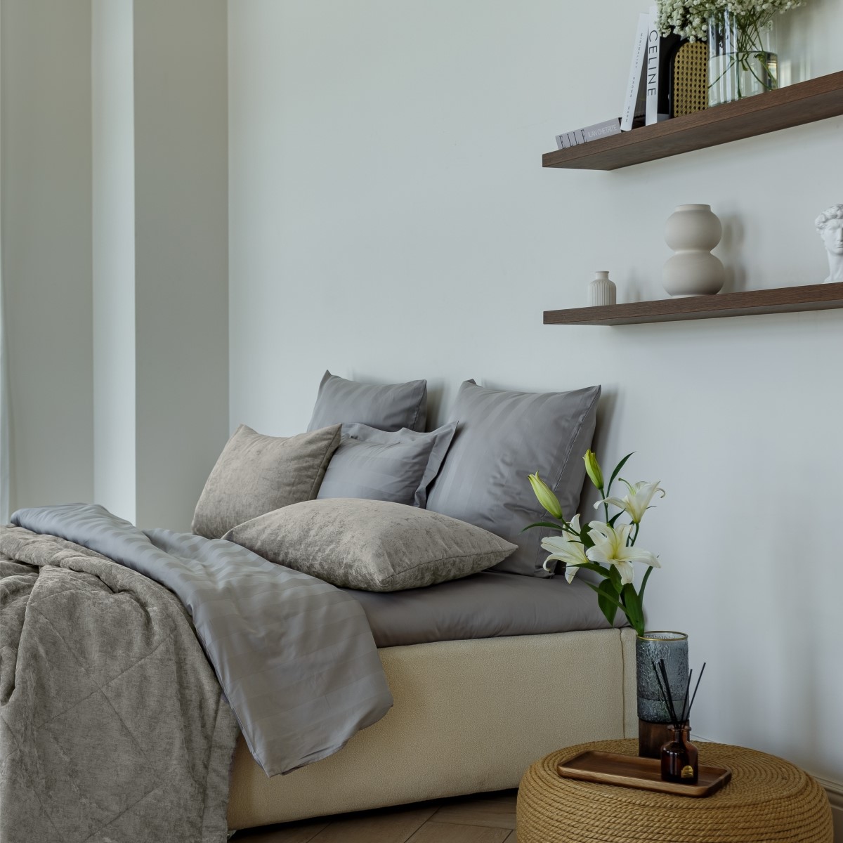 Выразительная игра света и мягкости гармонично воплощена в роскошной коллекции покрывал, она будто преобразует пространство, придавая ему благородный шик.