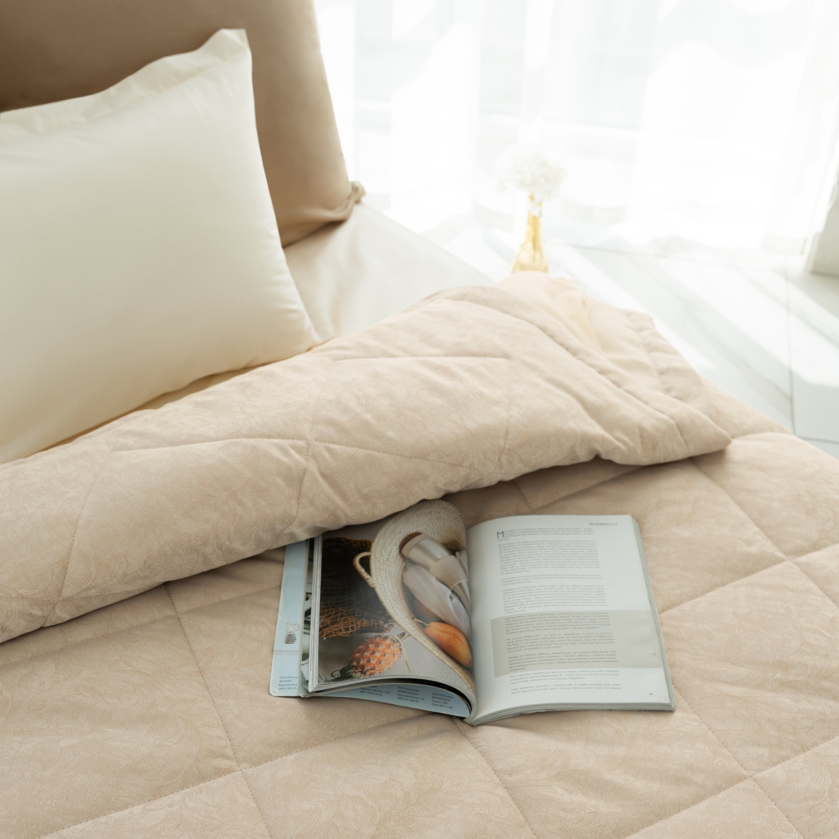 Подклад: микрофибра велюр, за счет своей фактуры он предотвращает скольжение покрывала на кровати.