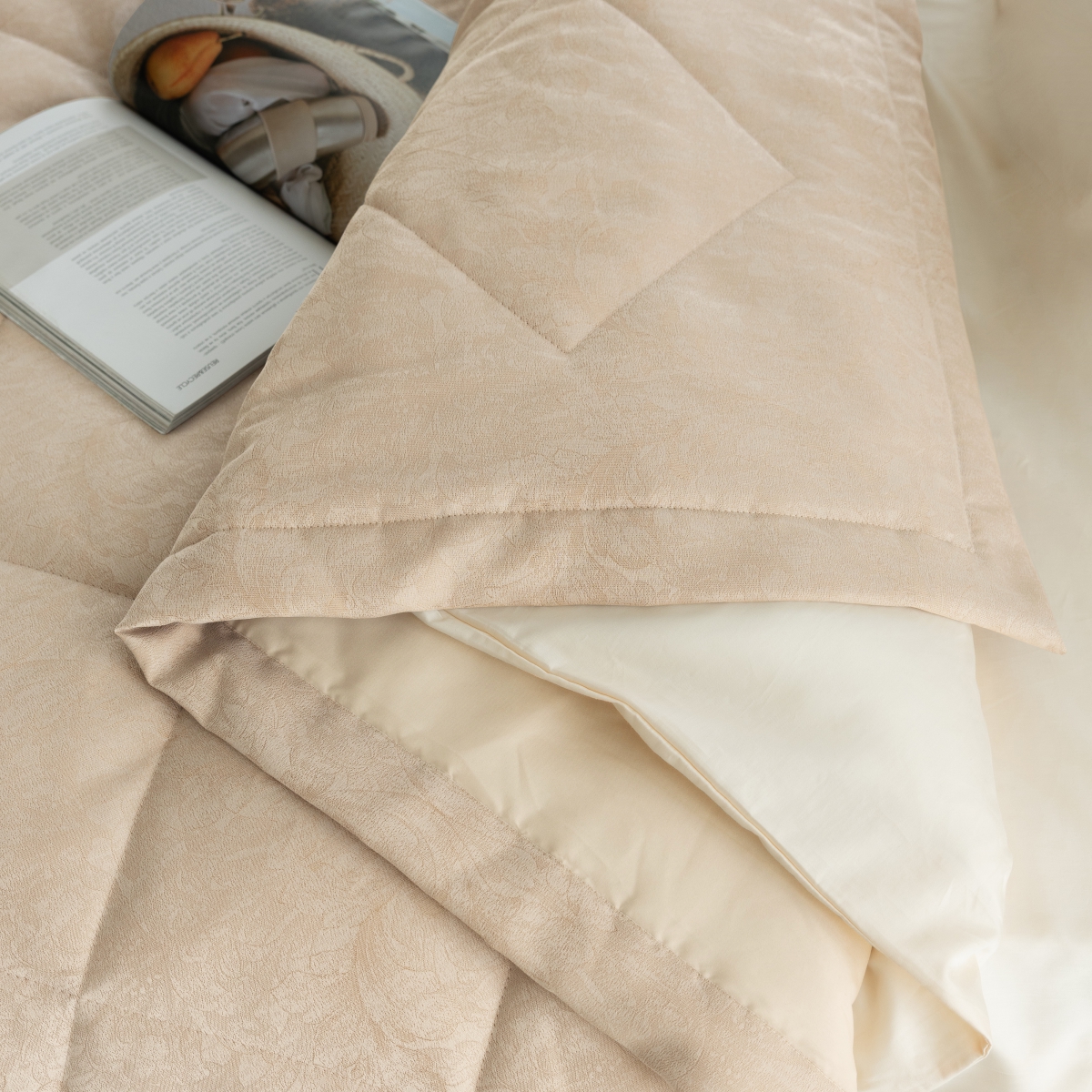 В комплект входит: покрывало стеганое 220х240 см, наволочек нет.