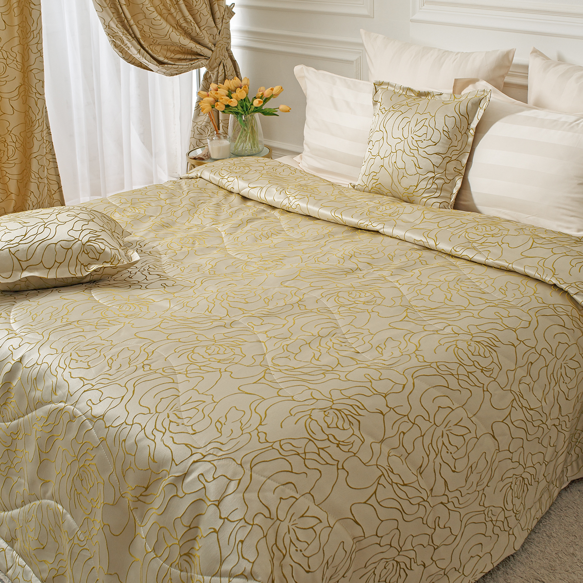 К покрывалу можно выбрать комплект штор из коллекции La Prima для создания неповторимой изюминки в вашем доме.