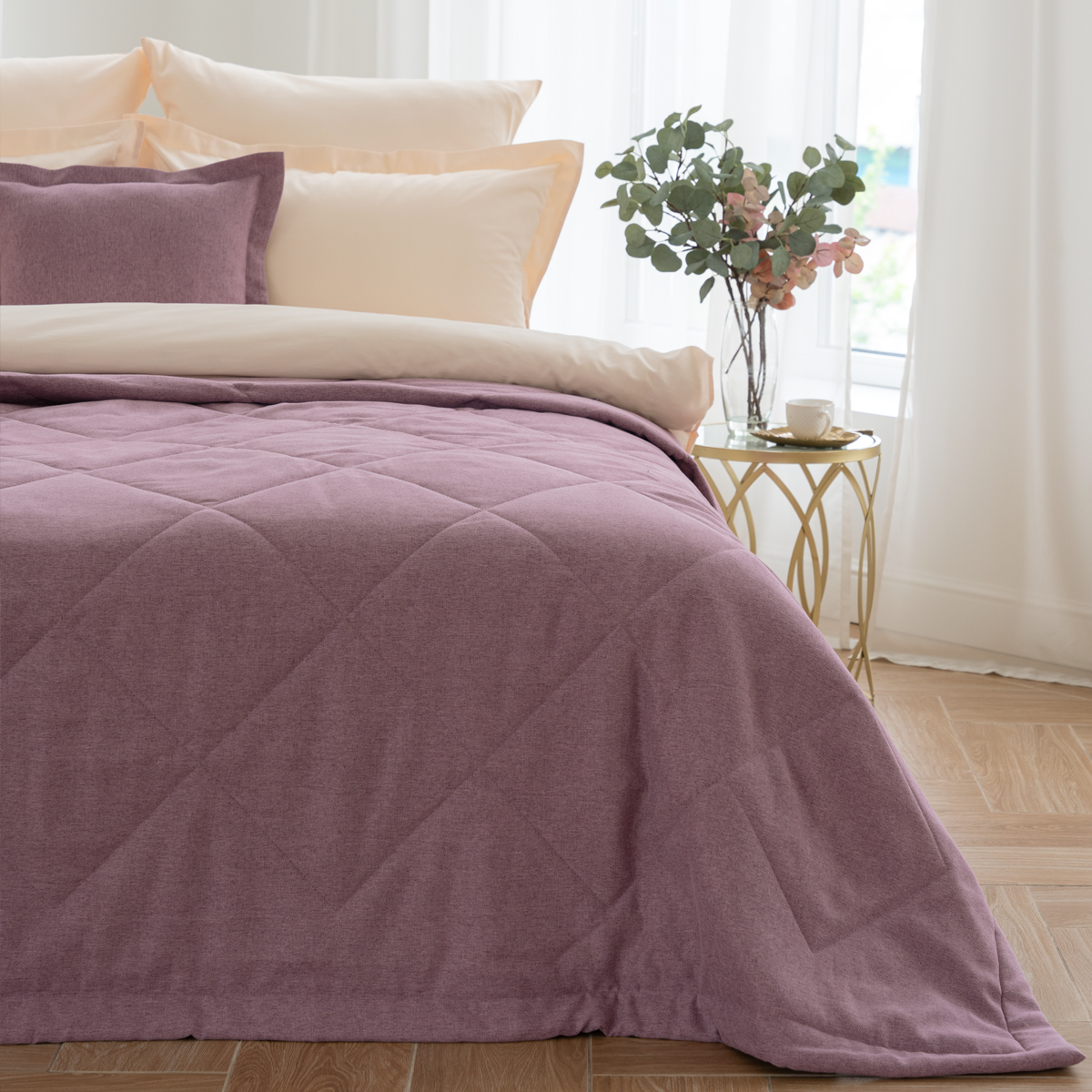Изысканная и простая красота раскрывается в универсальных и базовых расцветках однотонных покрывал. Фактурная благородная поверхность в виде «рогожки» органично подчеркнет индивидуальность интерьера, выделив в нем только самое важное.