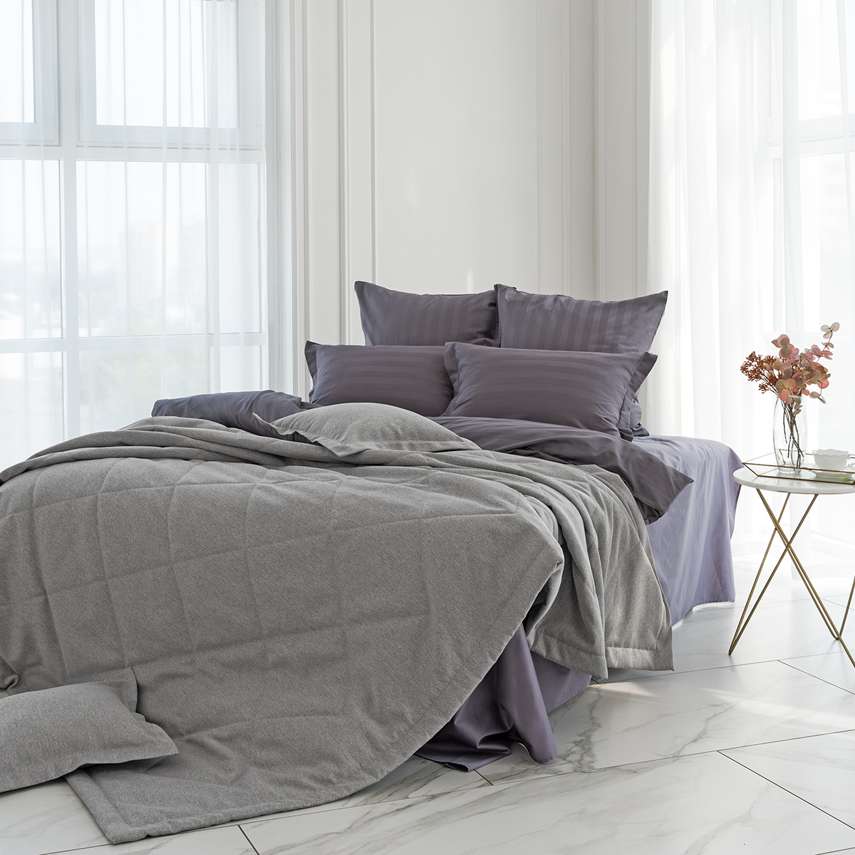 Состав: ткань портьерная 100% пэ - димаут, наполнитель - полиэфирное волокно. Стежка в виде ромбов. Подклад покрывала – микрофибра велюр, за счет своей фактуры он предотвращает скольжение покрывала на кровати.