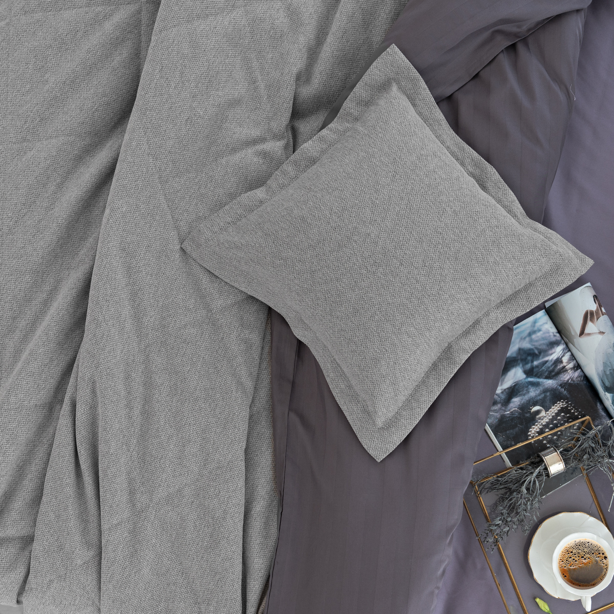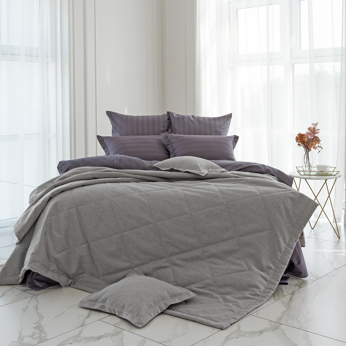 В комплект входит: стеганое покрывало на подкладе размер 240х260 см и 2 декоративные наволочки 45х45 см на молнии. Наволочки с четырех сторон декорированы ушками шириной 4 см.