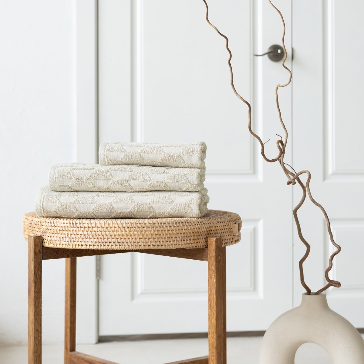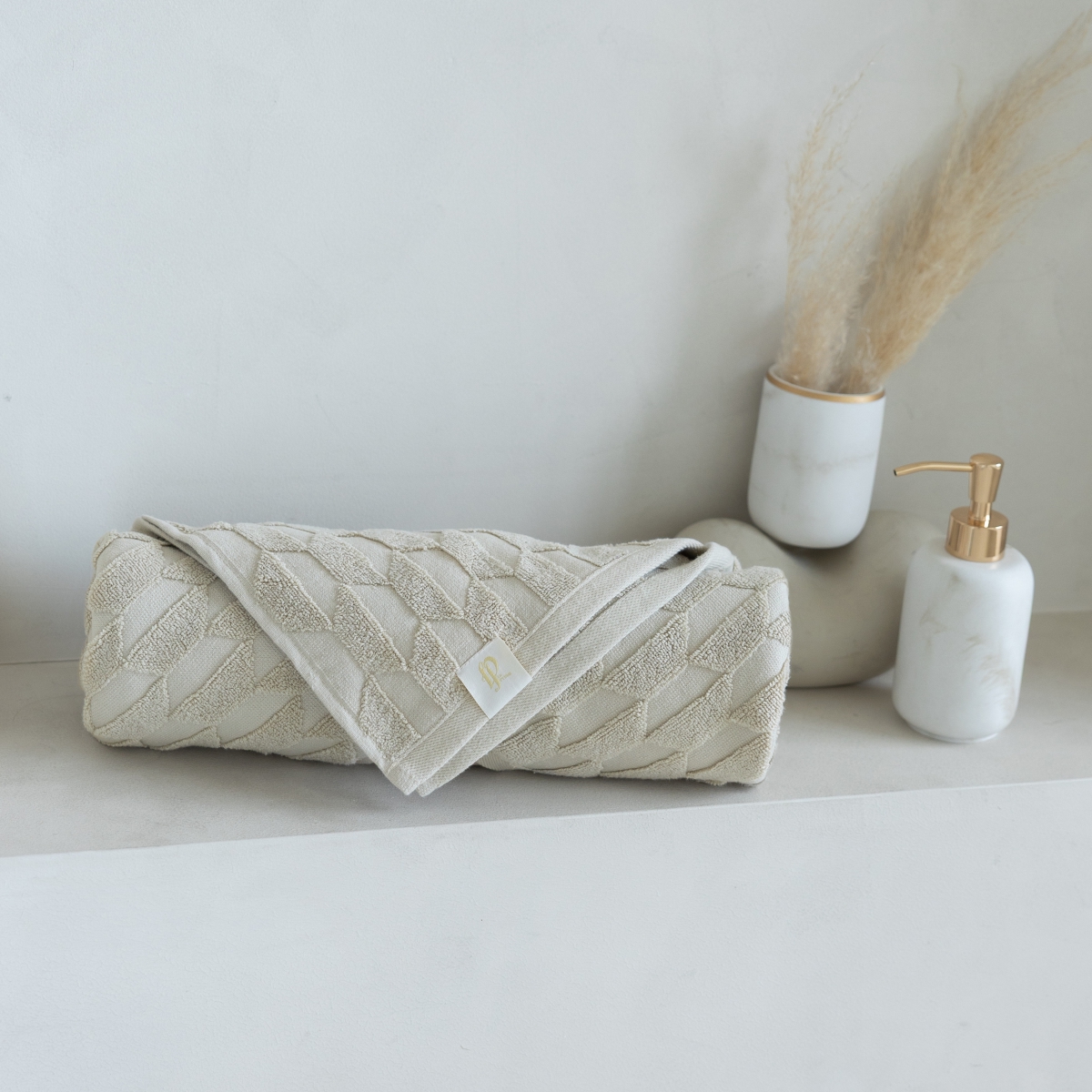 Махровые полотенца Diamond - это не просто полотенца, это воплощение элегантности и комфорта. Вдохновленные сиянием ограненных бриллиантов, мы создали коллекцию с узором в виде геометричной выстрижки, которая напоминает алмазную огранку, создает игру света и тени, превращая обычное полотенце в предмет интерьерного искусства.