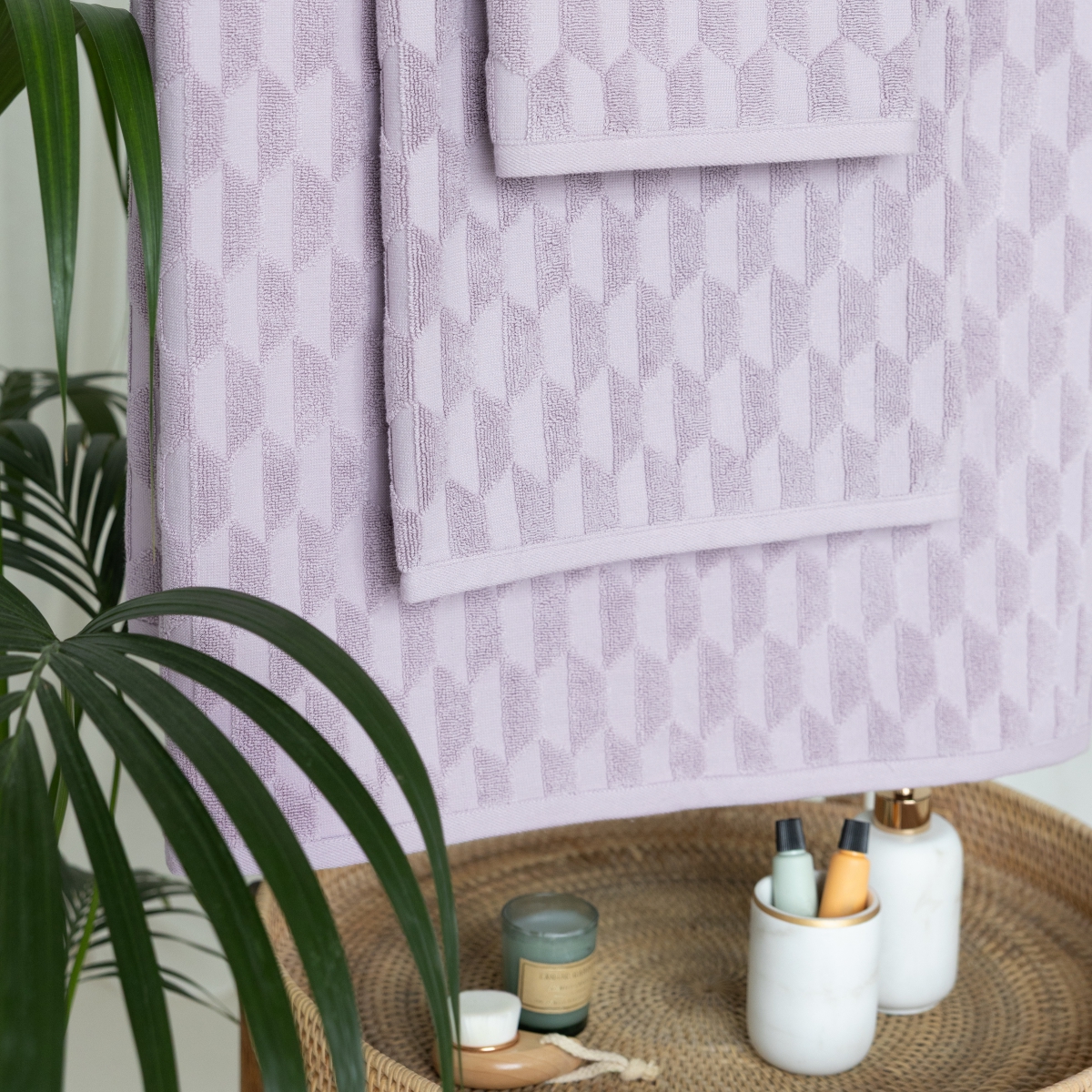 Махровые полотенца Diamond - это не просто полотенца, это воплощение элегантности и комфорта. Вдохновленные сиянием ограненных бриллиантов, мы создали коллекцию с узором в виде геометричной выстрижки, которая напоминает алмазную огранку, создает игру света и тени, превращая обычное полотенце в предмет интерьерного искусства.