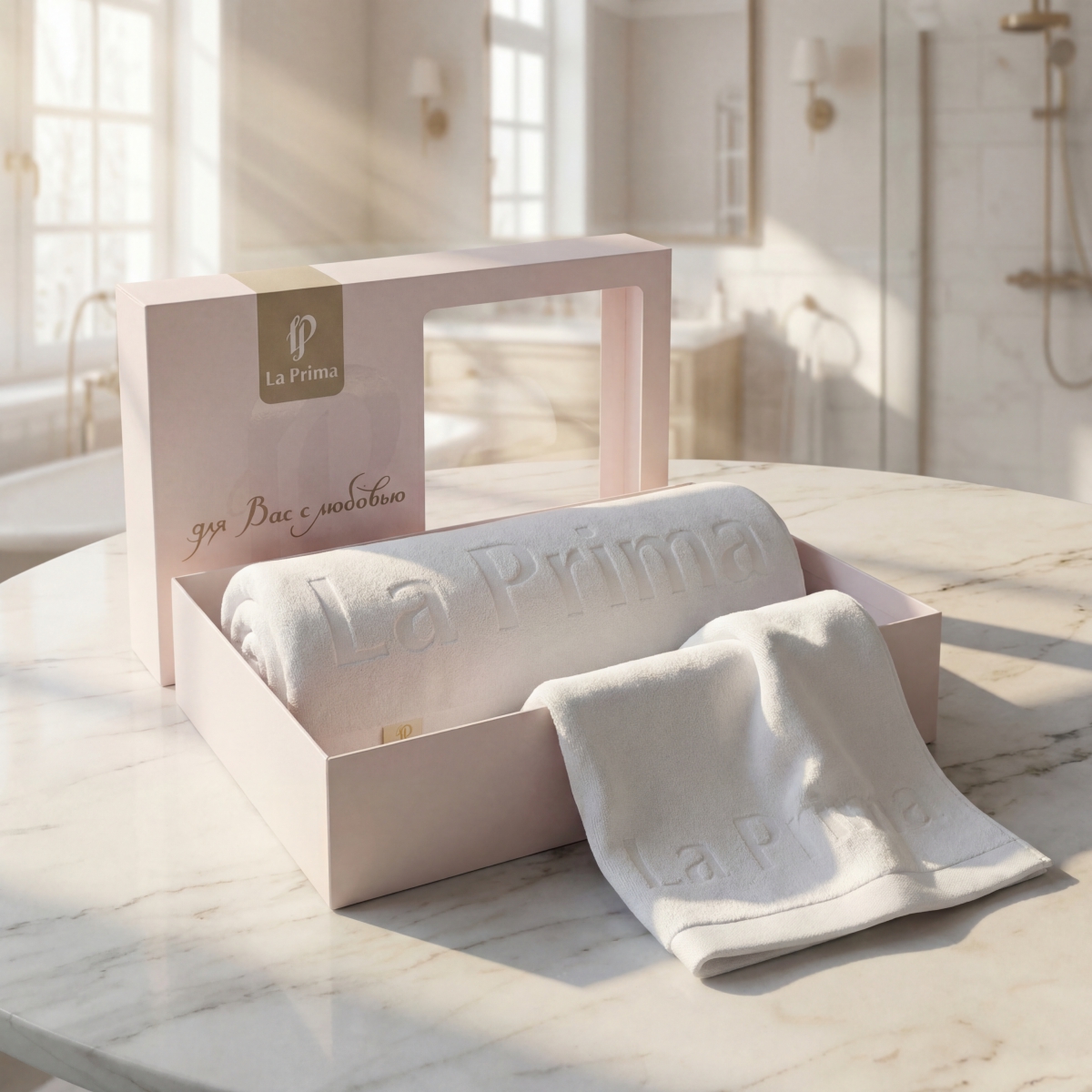 Два пушистых полотенца, упакованные в стильную коробку— вам остаётся только вручить.