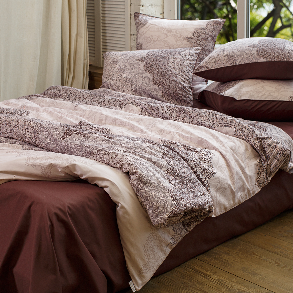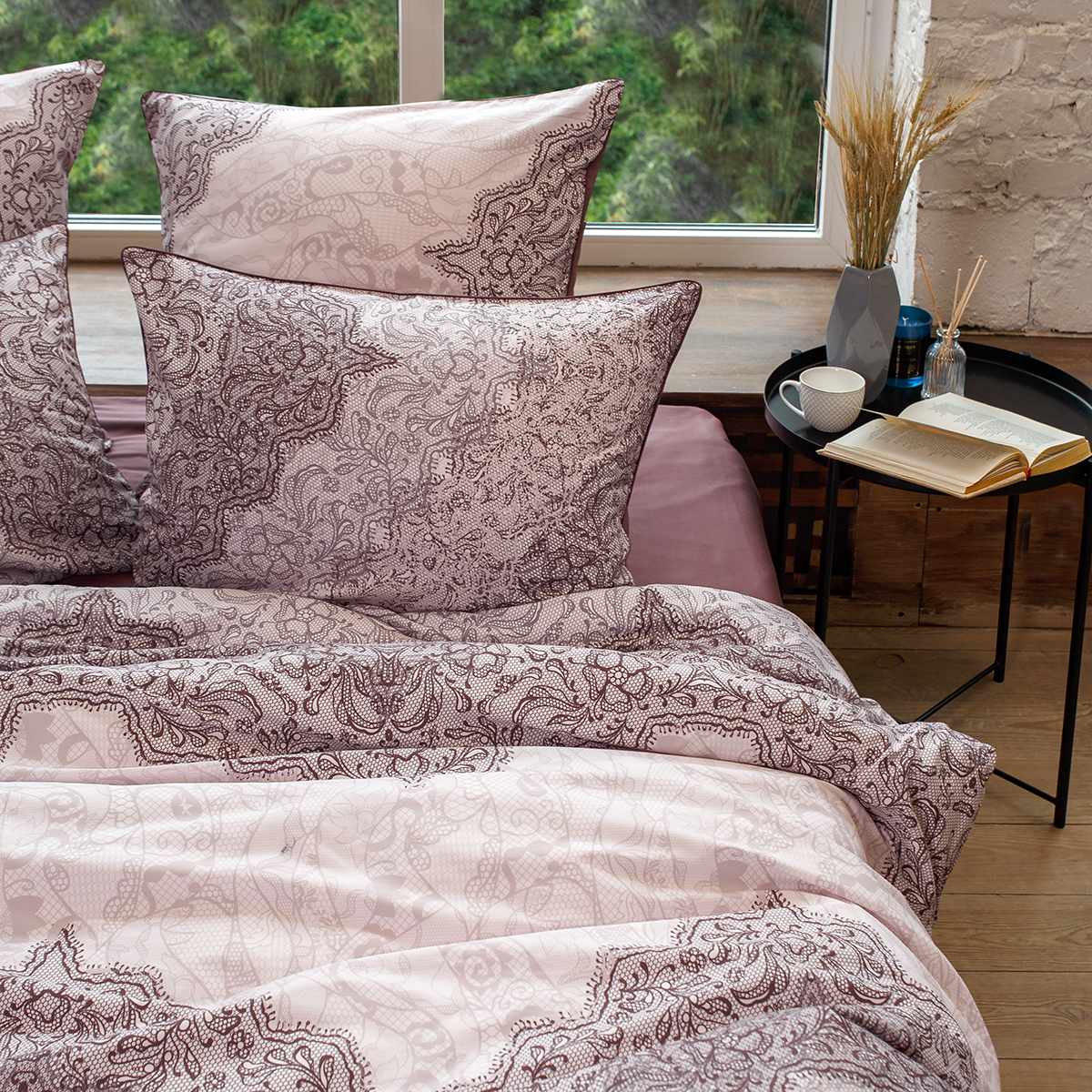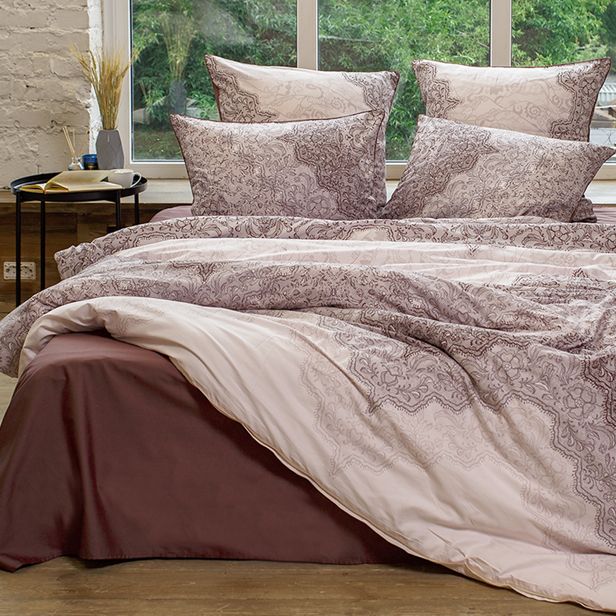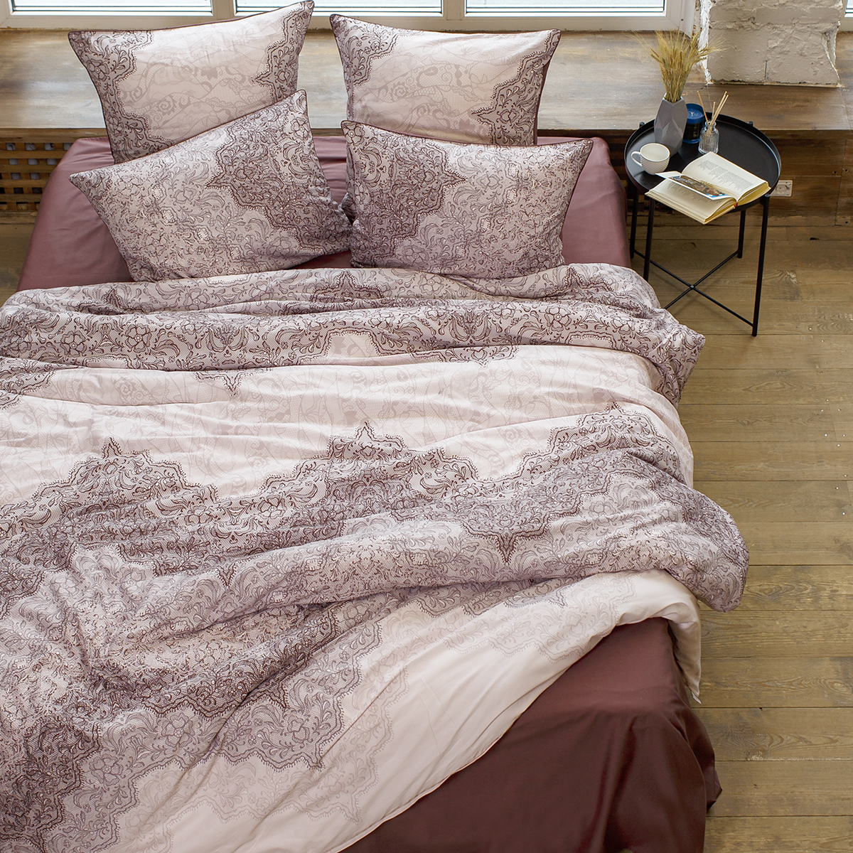 - Наволочки двухсторонние: лицевая сторона– классический принт, оборотная – однотонная. Декоративный кант по трем сторонам наволочки. Широкий запах на наволочках - легко менять подушки.