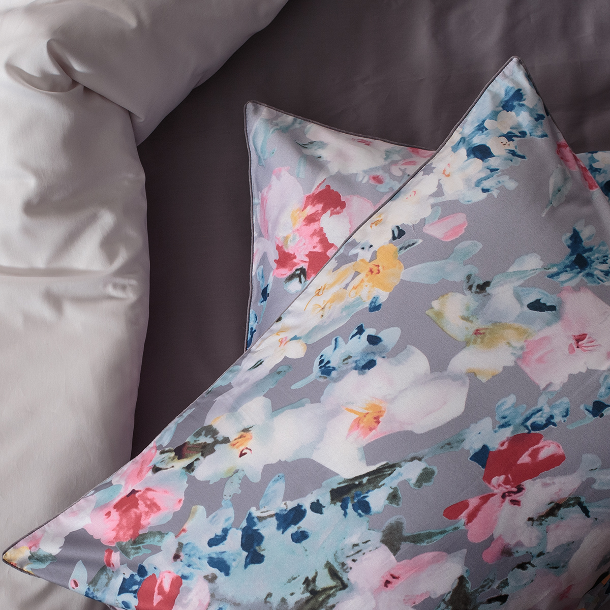 - Наволочки двухсторонние: лицевая сторона – цветочный принт, оборотная – однотонная. Декоративный кант по трем сторонам наволочки. Широкий запах на наволочках - легко менять подушки.