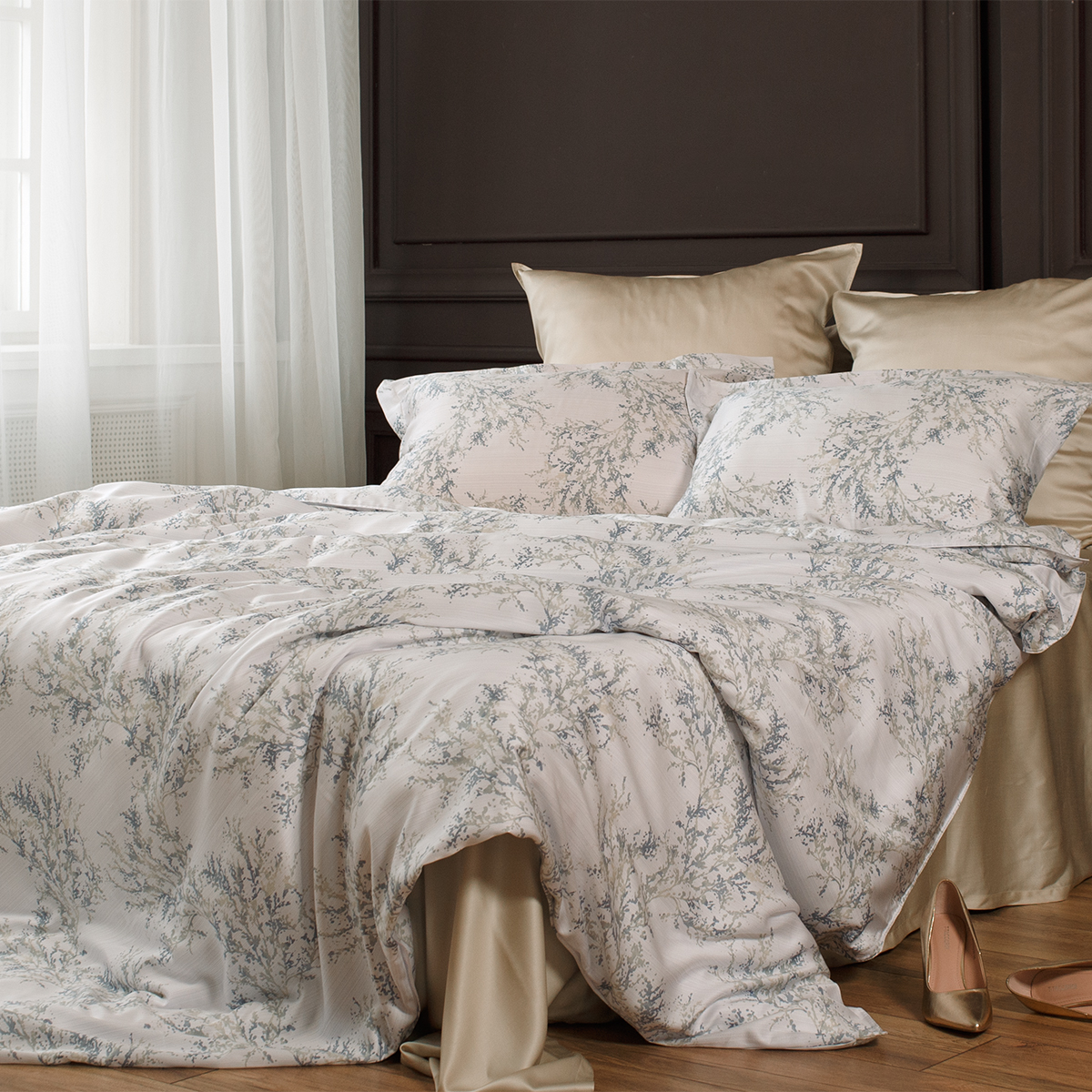Адриана. Изящный растительный принт передает хрупкую красоту и особую элегантность комплекта. Спокойствие и умиротворение... Настроение неги и наслаждения подчёркивает нежные и спокойные оттенки в которых выполнен комплект.