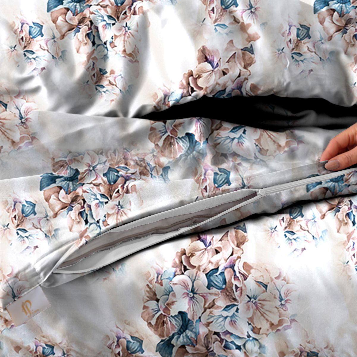 Молния-«невидимка» во всю ширину по нижнему краю и клапаны для рук в верхней части пододеяльника, а также широкий запах наволочки позволяют менять белье быстро как никогда.