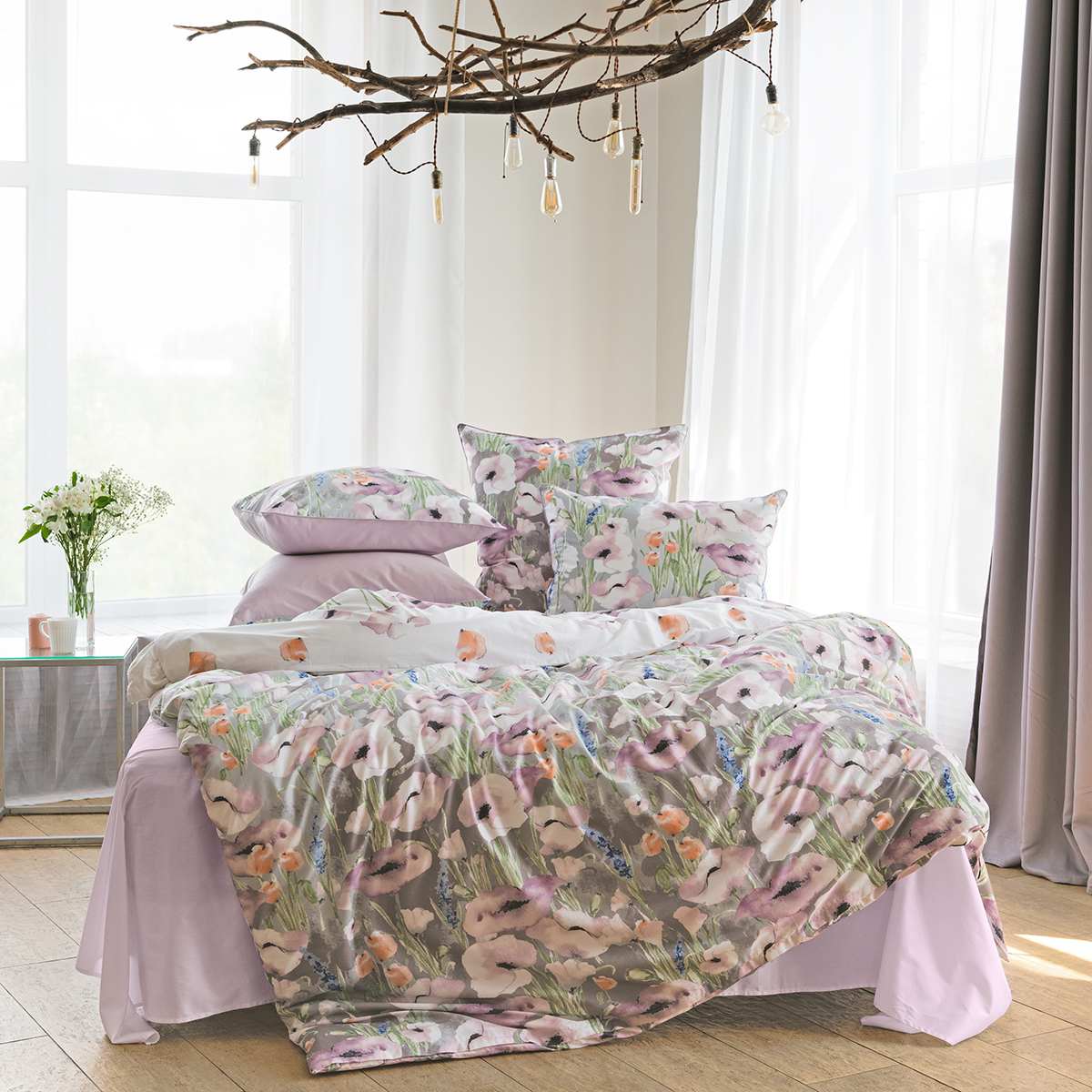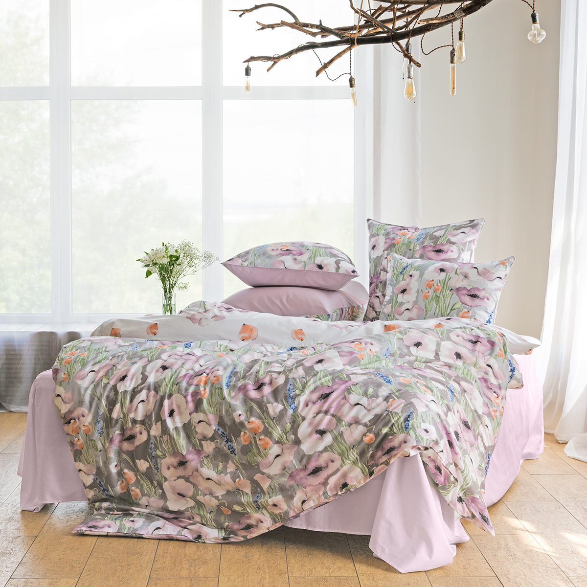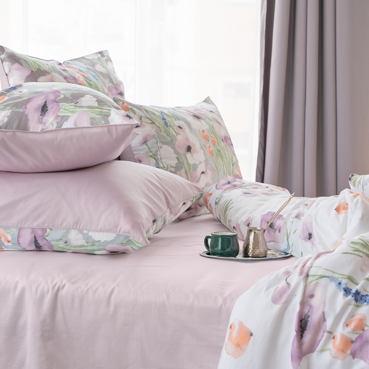 Постельное белье «Дельфина» - искусная картина талантливого художника - нежные акварельные текстуры, залитая солнцем цветочная поляна… Восхитительный аромат свежего летнего утра.