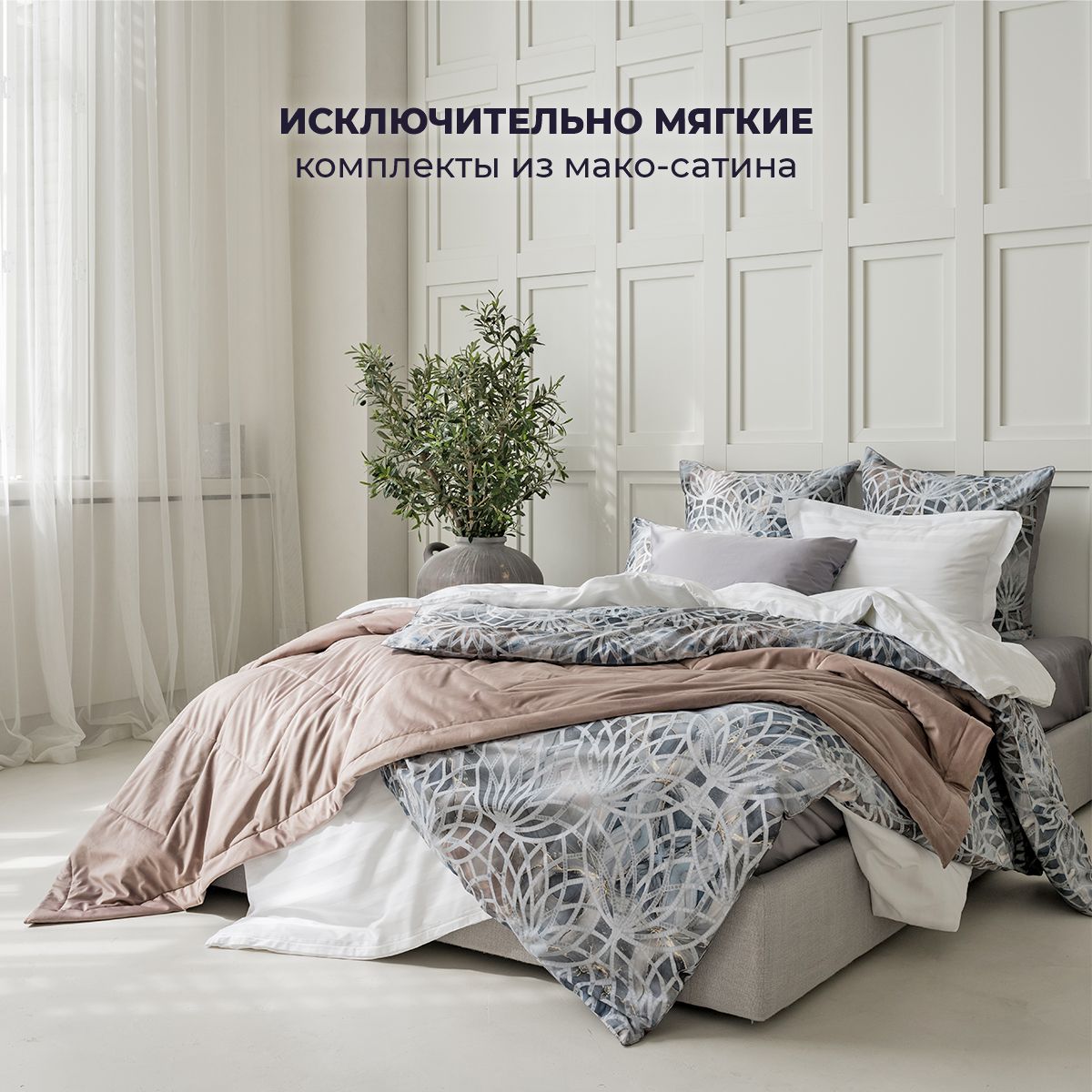 Нет ничего прекраснее кровати, которая так и манит в свои нежные объятия! Наши исключительно мягкие комплекты из мако-сатина действуют именно так — они дышащие, гладкие, прочные и словно созданы для аристократической спальни.