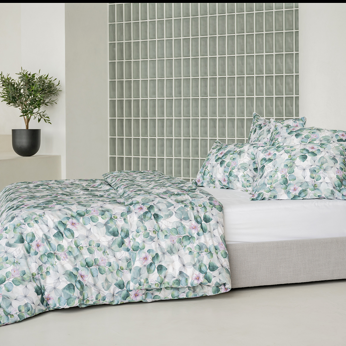 Эта ткань не требует специального ухода – легко стирается и гладится. Пропускает воздух, поддерживает комфортную температуру тела, когда вы спите. Гипоаллергенно.