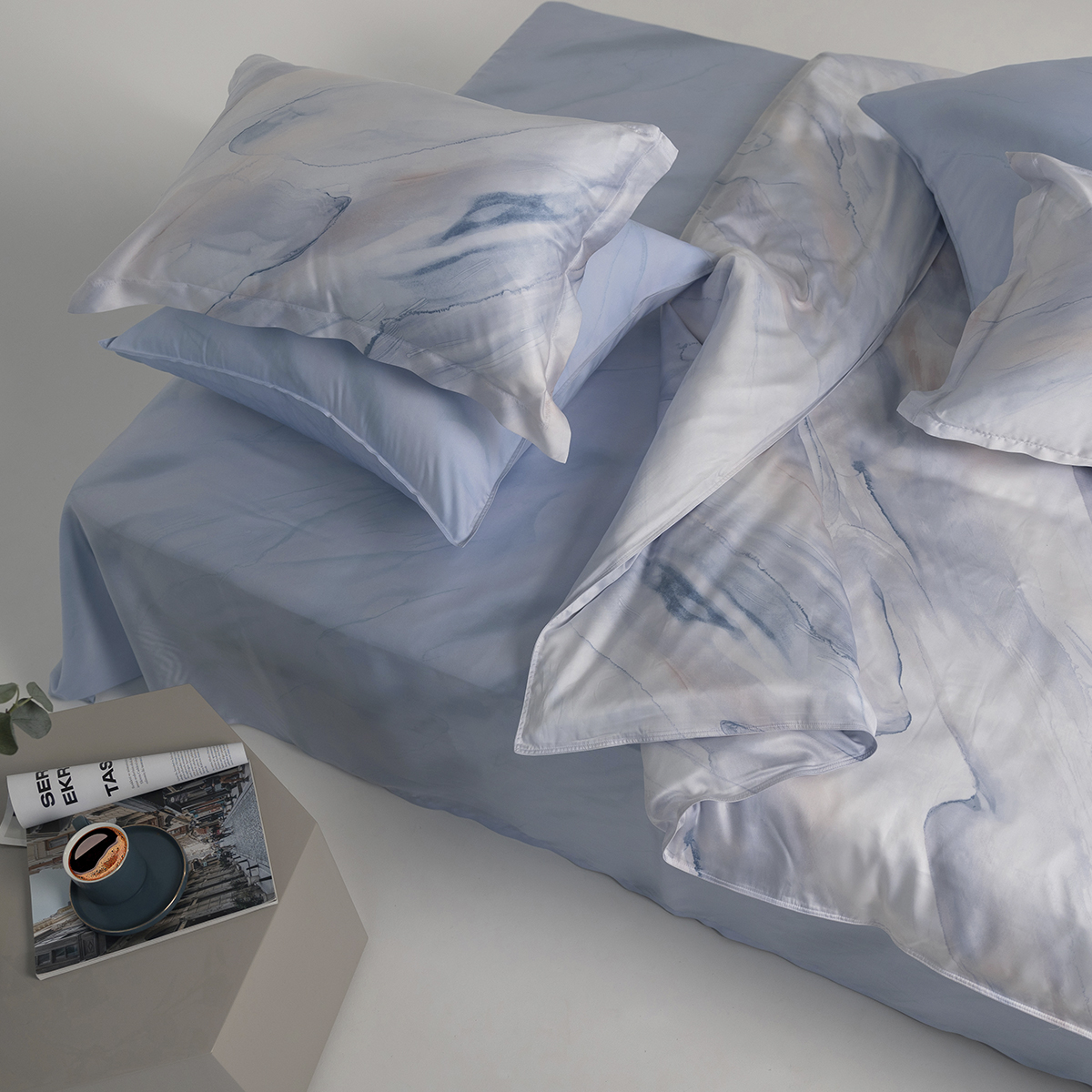 Комплект постельного белья произведен из 100% эвкалиптового волокна Tencel, которое ученые называют инновационным материалом нового поколения.
