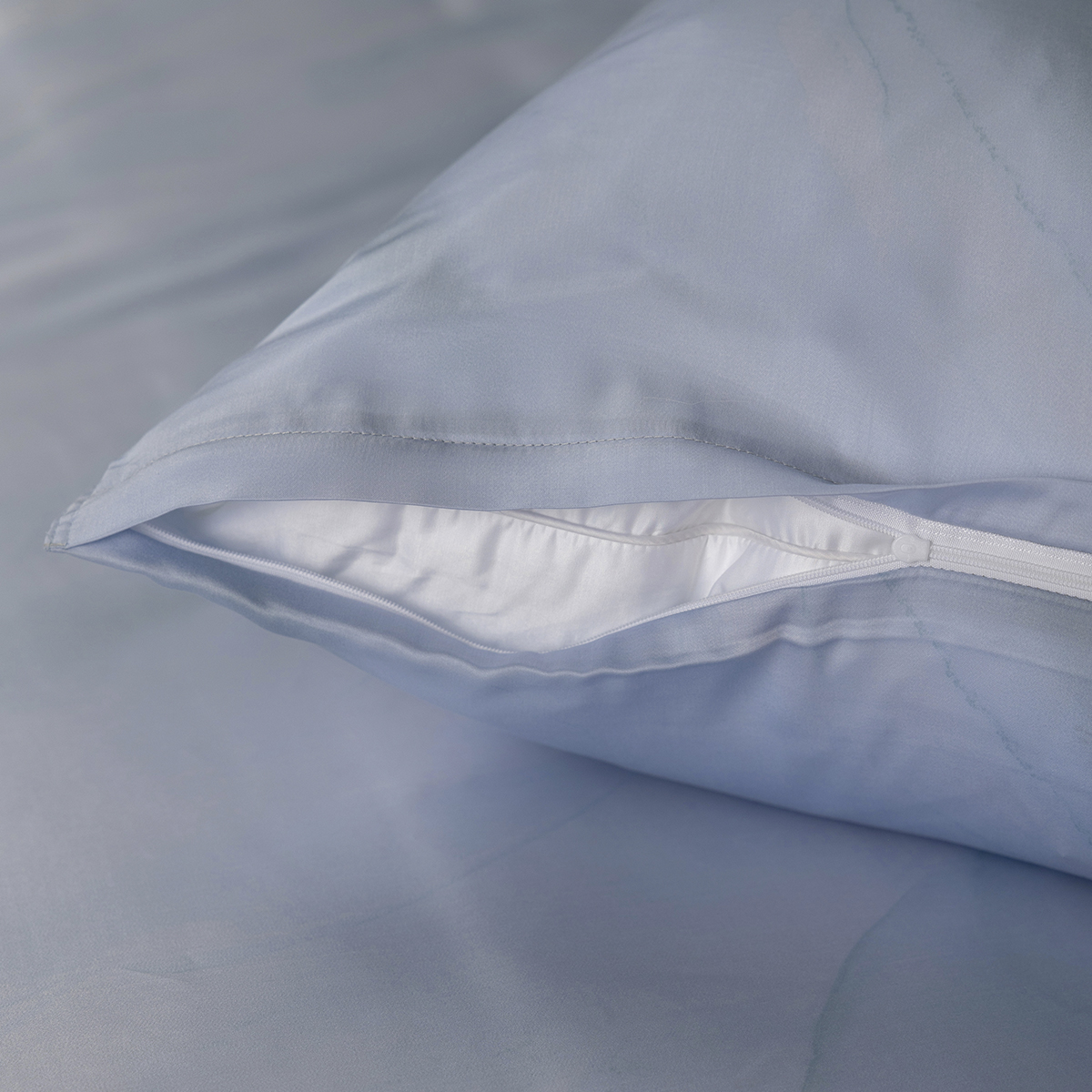 - «Невидимая» молния во всю ширину по нижнему краю пододеяльника. Двойная отделочная отсрочка по 3м сторонам пододеяльника