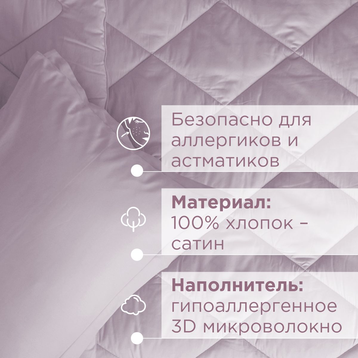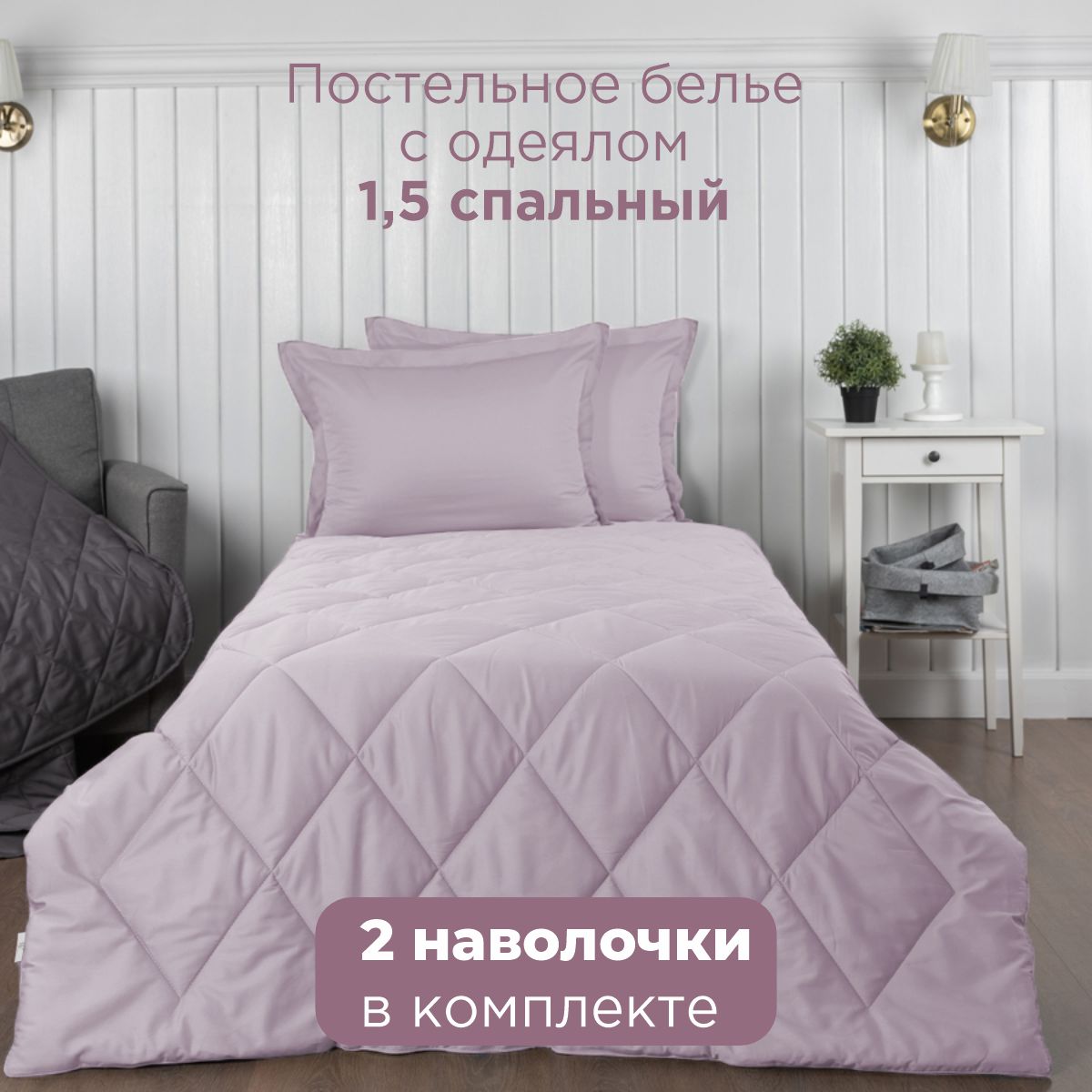 ПОСТЕЛЬНОЕ БЕЛЬЁ САТИН С ОДЕЯЛОМ 2 НАВОЛОЧКИ ФИАЛКОВЫЙ