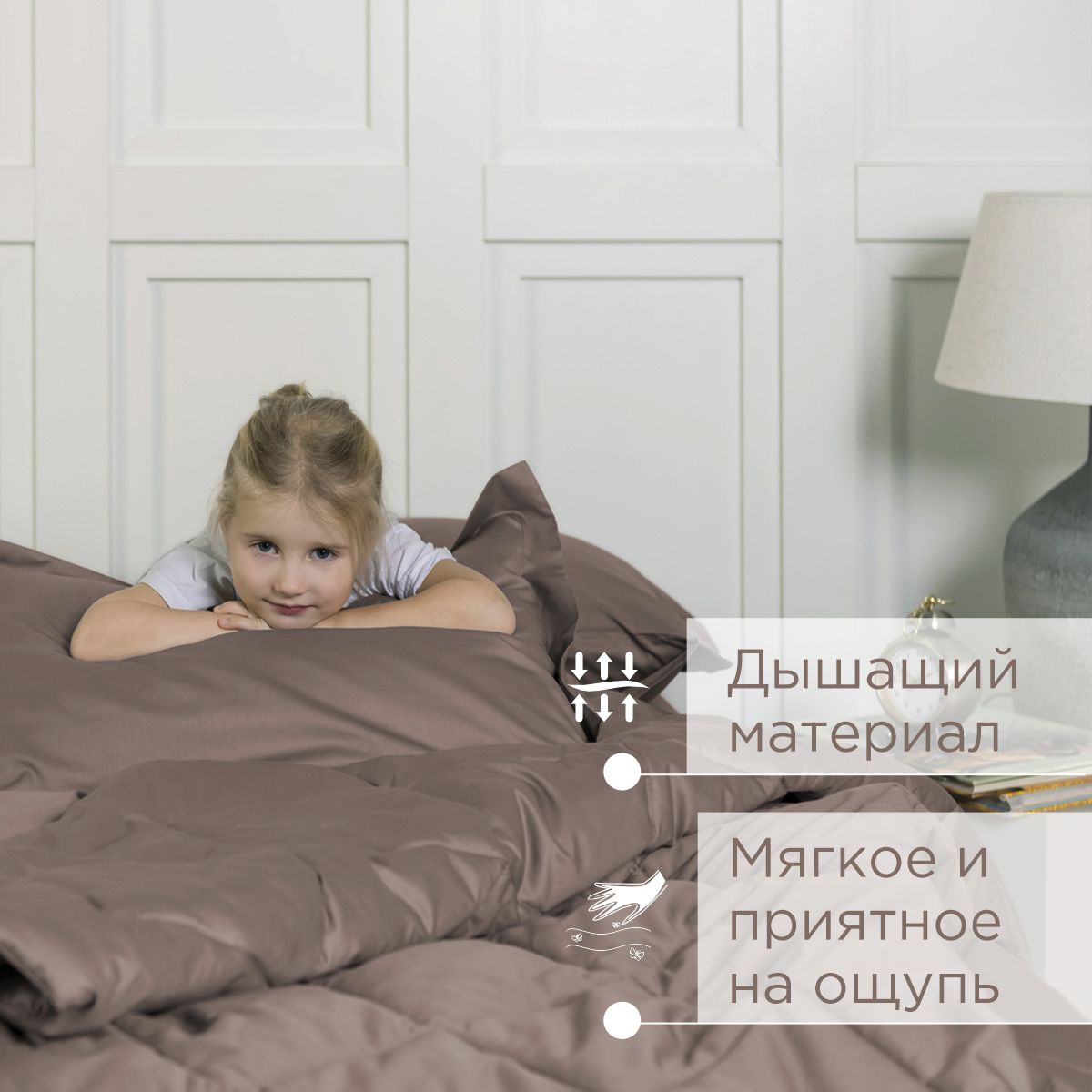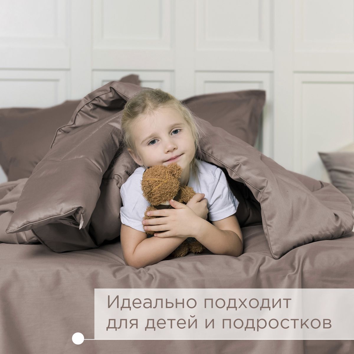 ПОСТЕЛЬНОЕ БЕЛЬЁ САТИН С ОДЕЯЛОМ 2 НАВОЛОЧКИ КОФЕЙНЫЙ