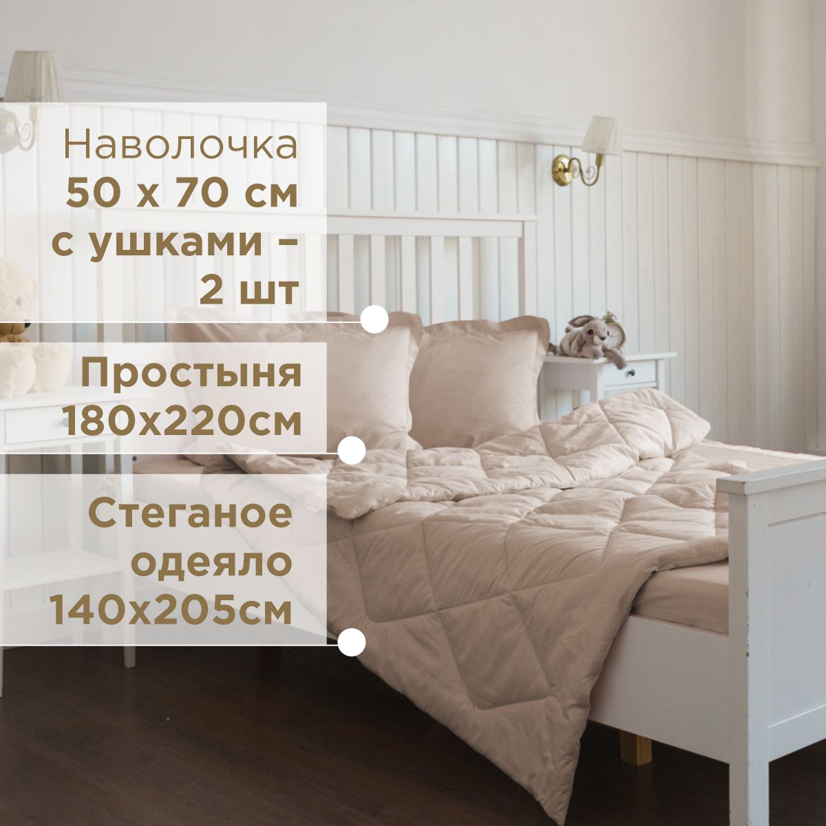 ПОСТЕЛЬНОЕ БЕЛЬЁ САТИН С ОДЕЯЛОМ 2 НАВОЛОЧКИ КАПУЧИНО