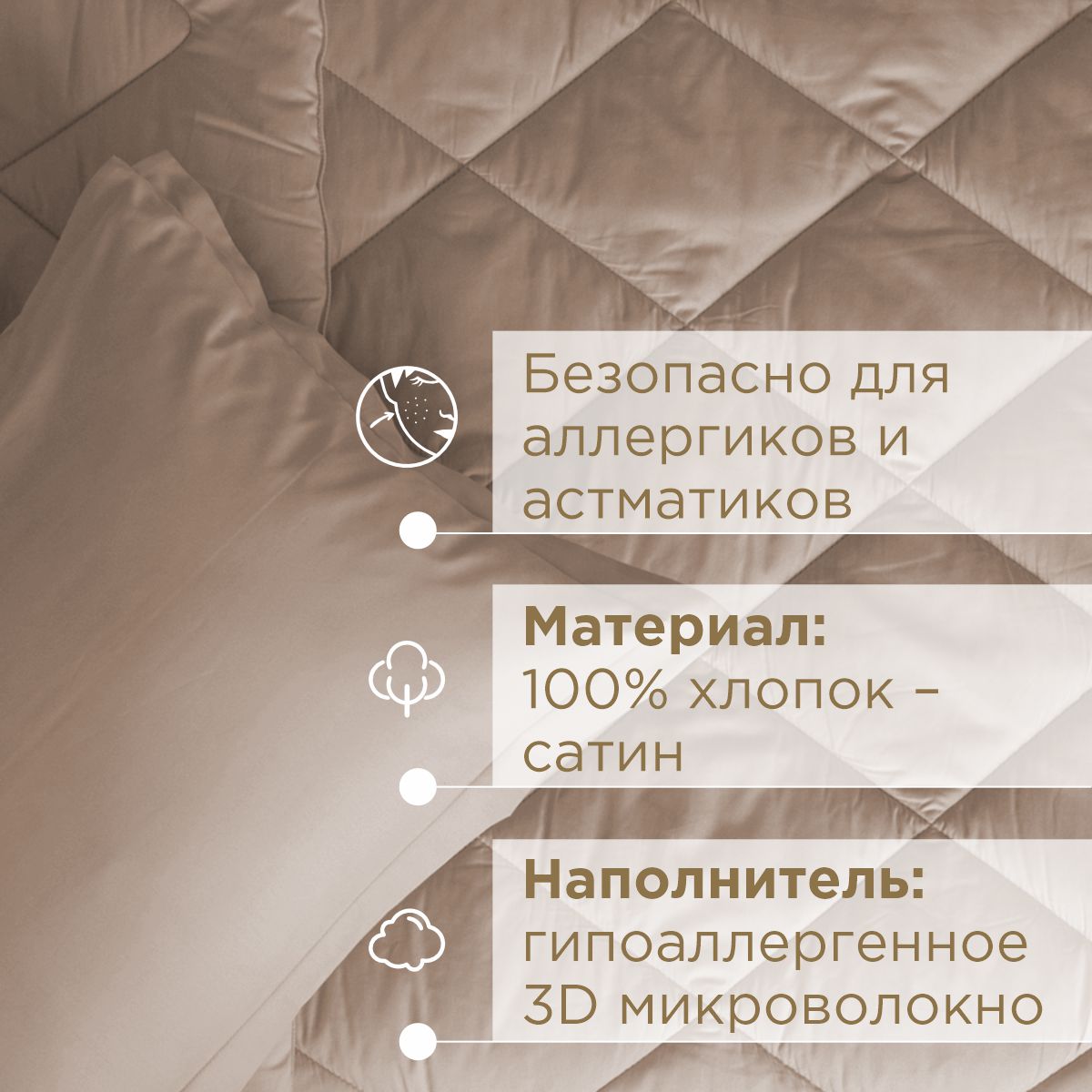 - Стеганое одеяло 140х205см. Одеяло всесезонное, плотность 200гр, что позволяет пользоваться им круглый год. Наполнитель у одеяла: гипоаллергенное 3D микроволокно, не сбивается после стирок.