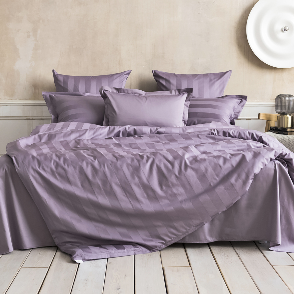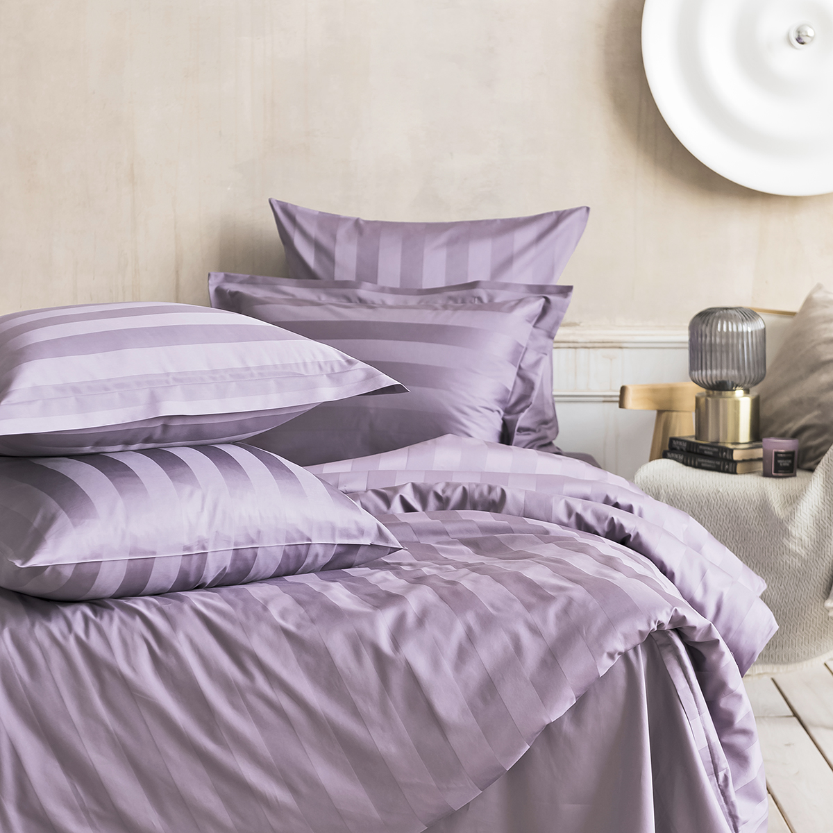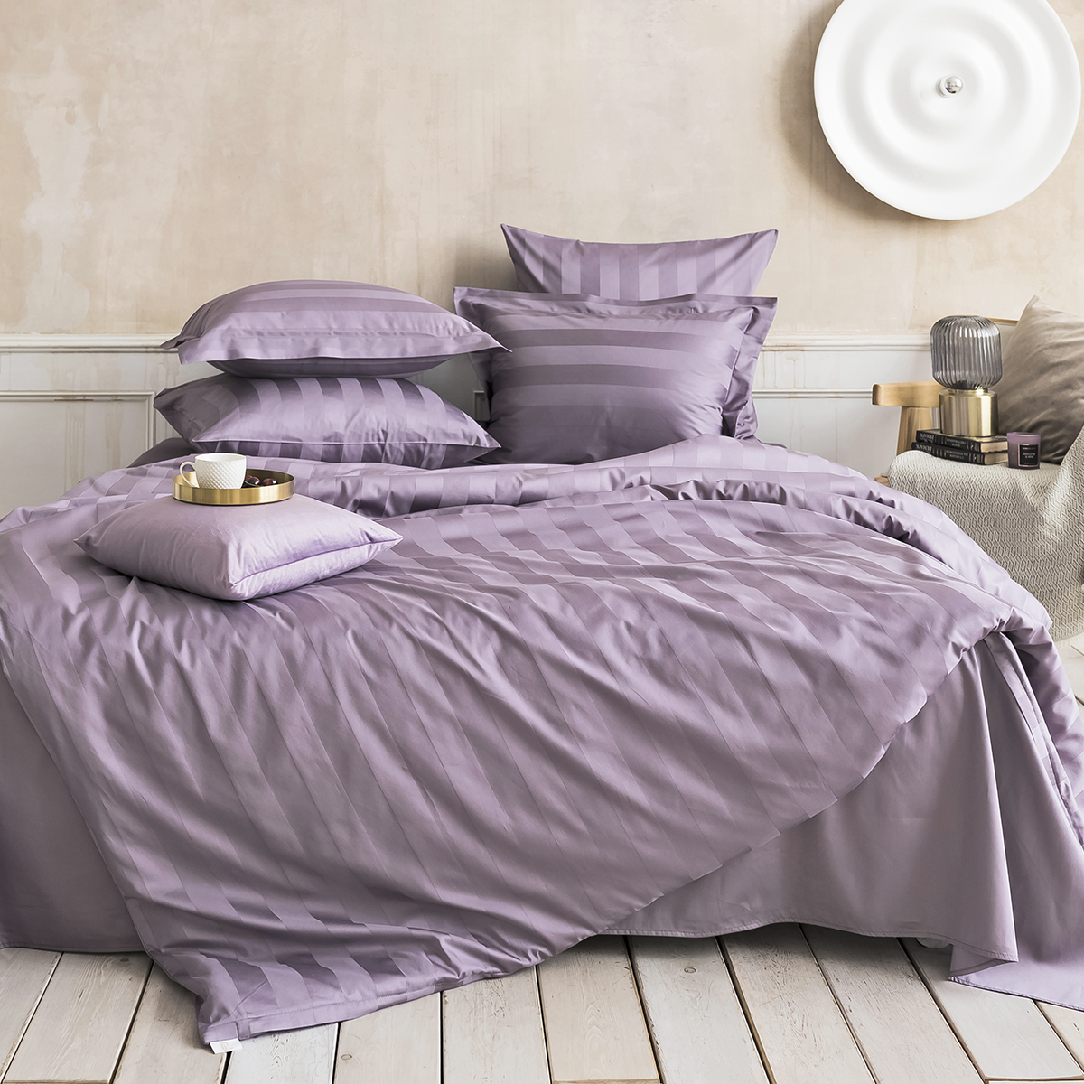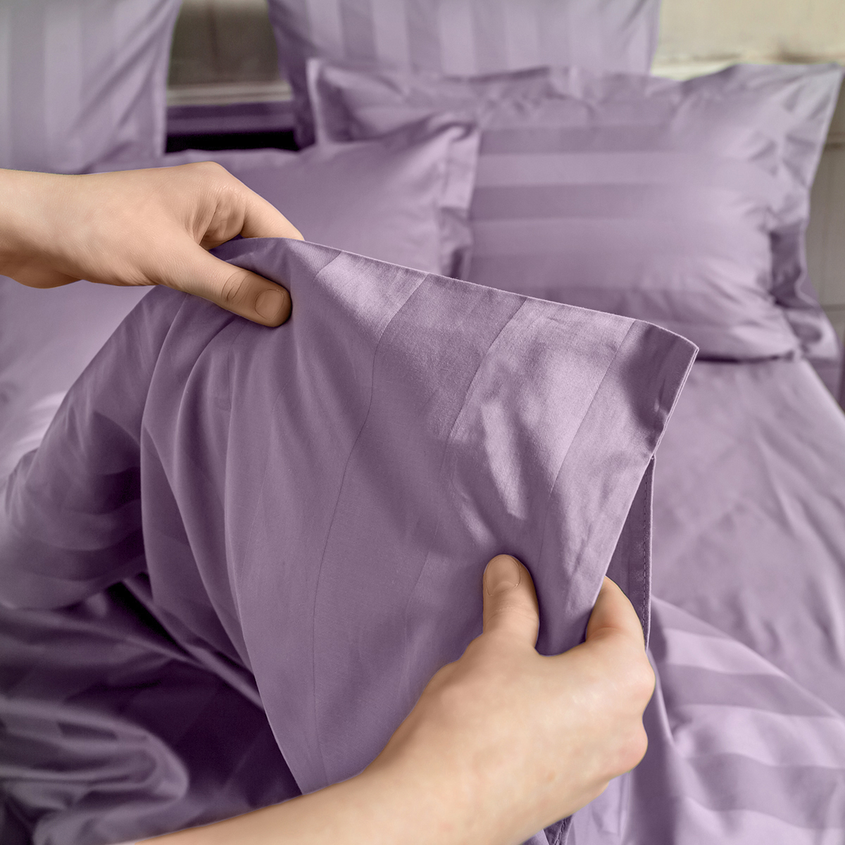 Однотонный комплект постельного белья - роскошный 100% египетский хлопок высшего сорта, с жаккардовым рисунком в виде полос 5х5см. Используется более тонкая 60-я нить. За счет специальной скрутки нити, ткань получается очень мягкая и приятная на ощупь. Имеет благородный блеск.