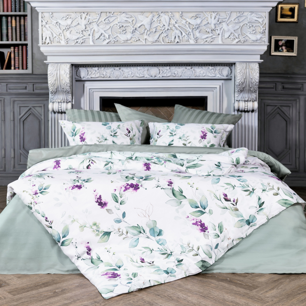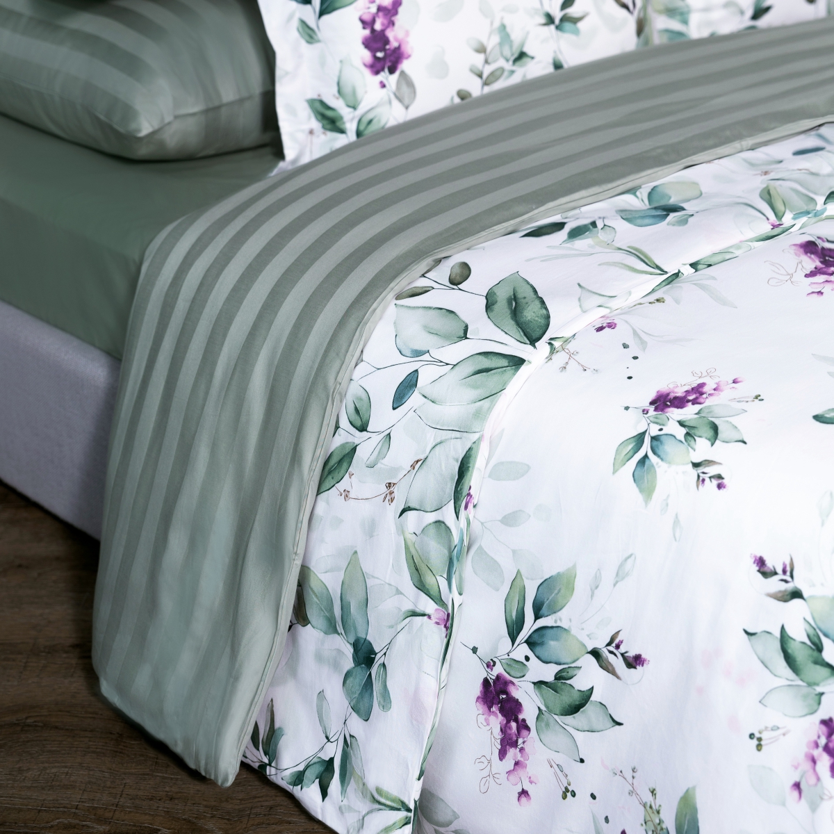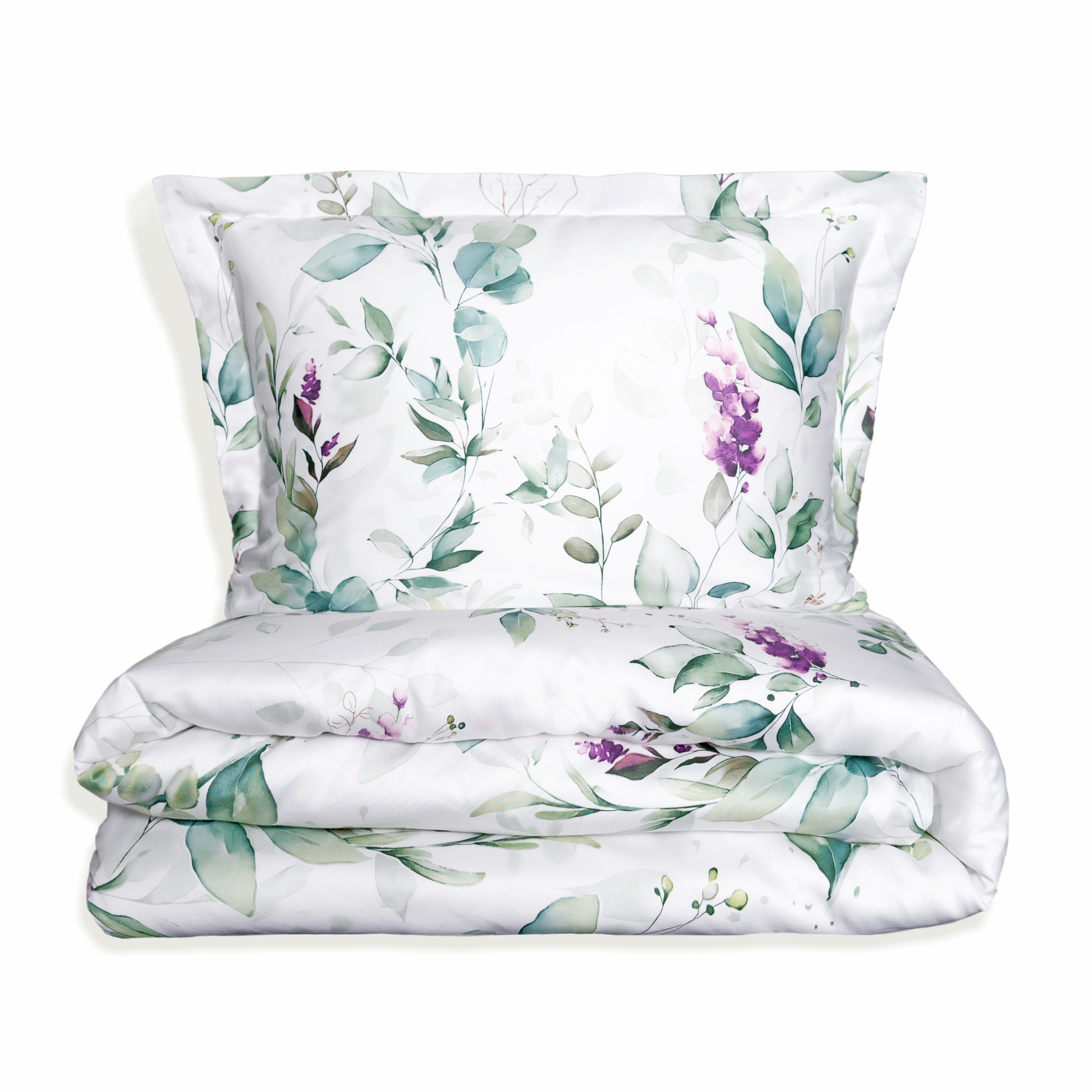Роскошный комплект постельного белья Асоль из люкс-сатина - изящный и нежный акварельный растительный принт на белоснежном фоне вдохновляет утренней свежестью и романтичным флером.