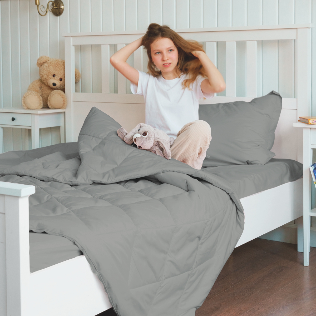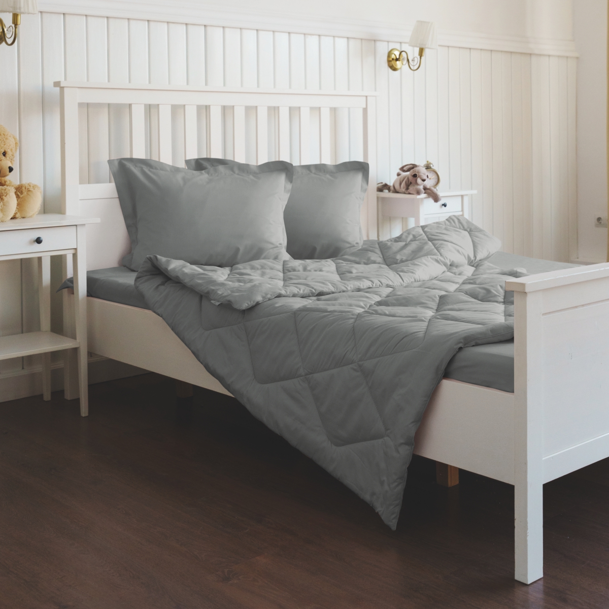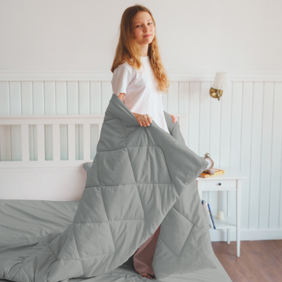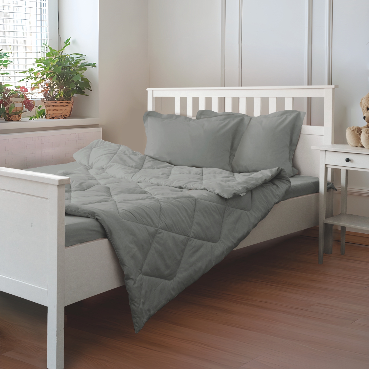 За постельным бельем с одеялом легко ухаживать, его можно стирать в стиральной машине, оно выдерживает до 500 стирок.