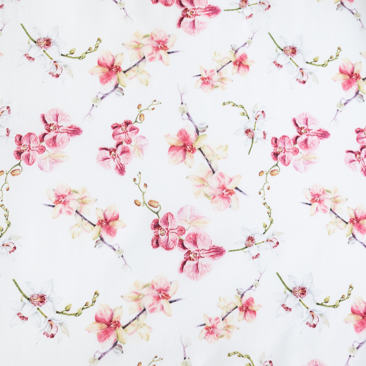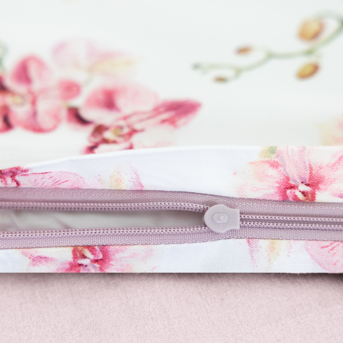 Дизайн «Этюд» - представьте утро, когда за окном — осенняя дымка, а в вашей спальне — по-летнему светло. Идеально белый фон комплекта, как первый искристый иней, отражает свет и наполняет комнату ощущением чистоты и простора. А утонченные орхидеи, застывшие в шелковистой глади сатина, — это напоминание о вашей собственной изысканности и внутренней силе.