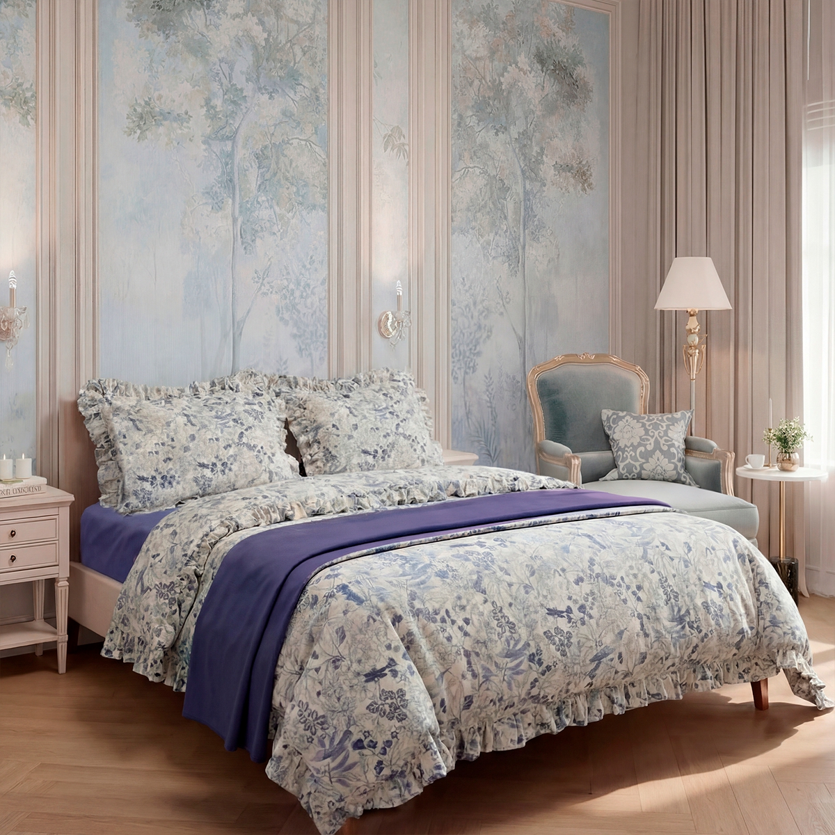 Эта ткань гипоаллергенна, не требует специального ухода – легко стирается и гладится. Пропускает воздух и поддерживает комфортную температуру тела, когда вы спите.