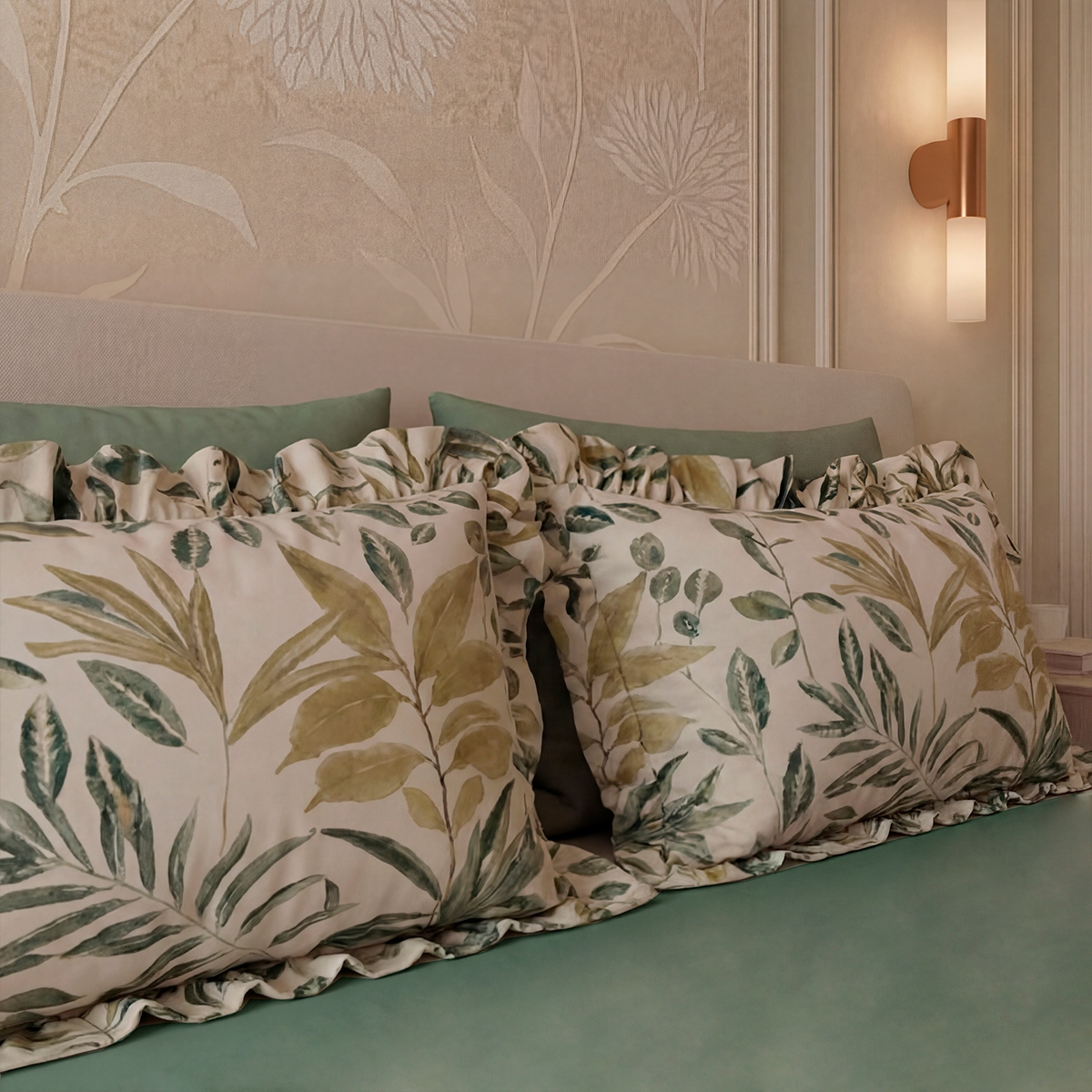 «Мариана»: Стильный растительный принт на молочно-бежевом фоне. Утонченный и современный. Привносит в спальню свежесть, легкость и природную гармонию.