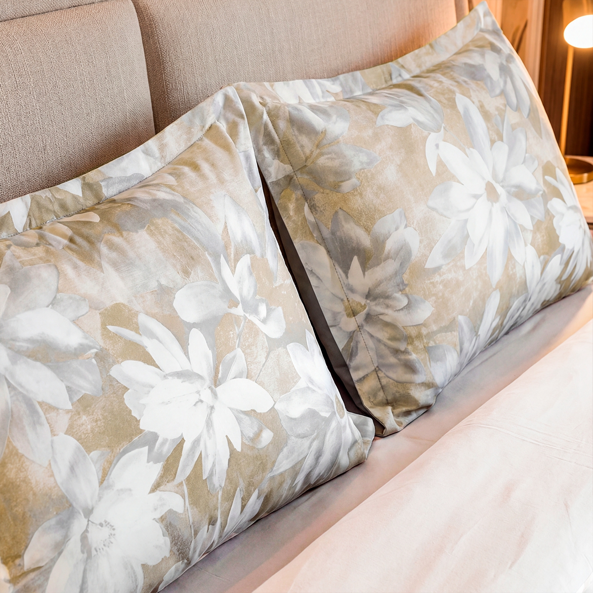«Мариселла»: Крупный цветочный принт на теплом бежевом фоне. Это сад в стиле старых мастеров, перенесенный на ткань. Дарит ощущение роскоши, стабильности и связи с природой.