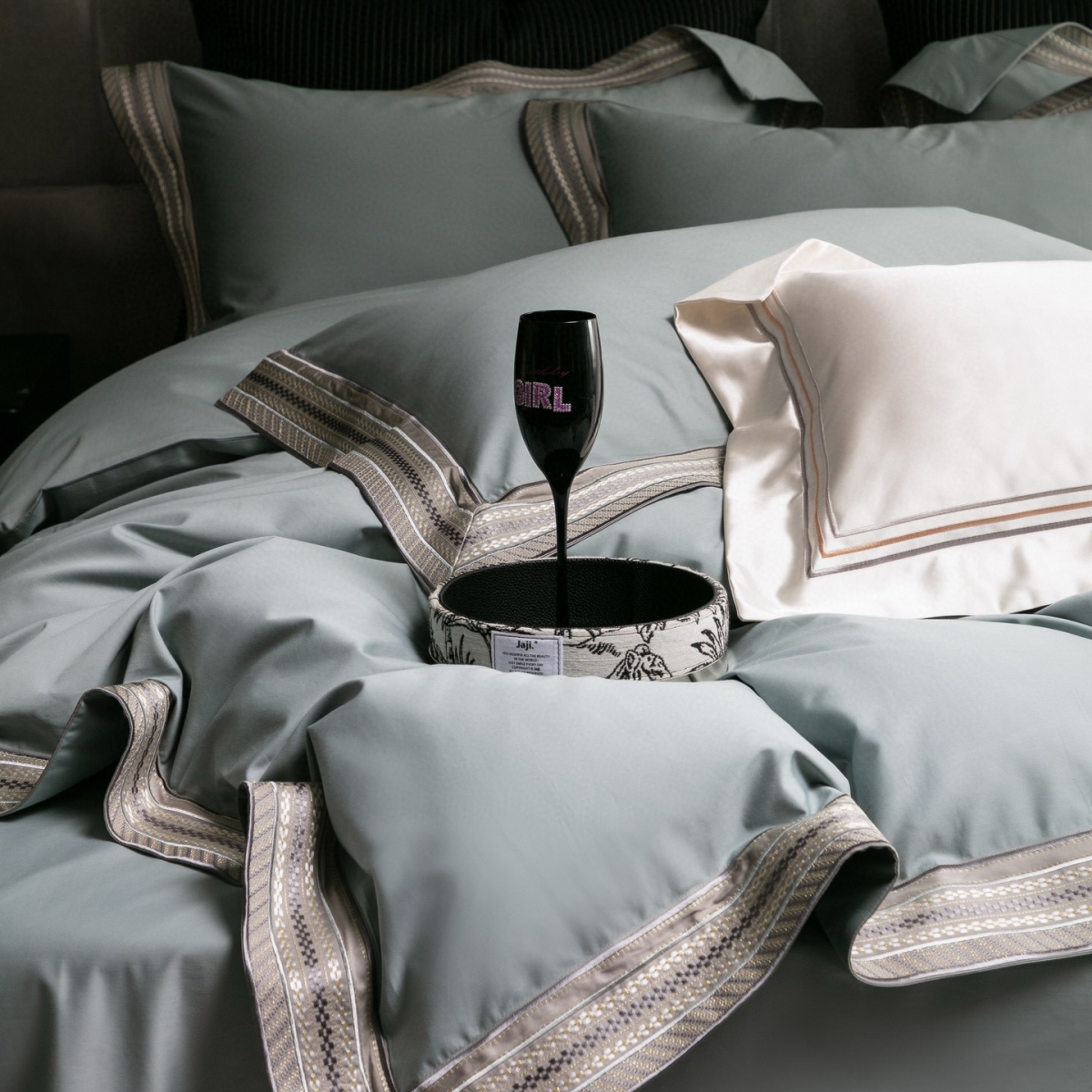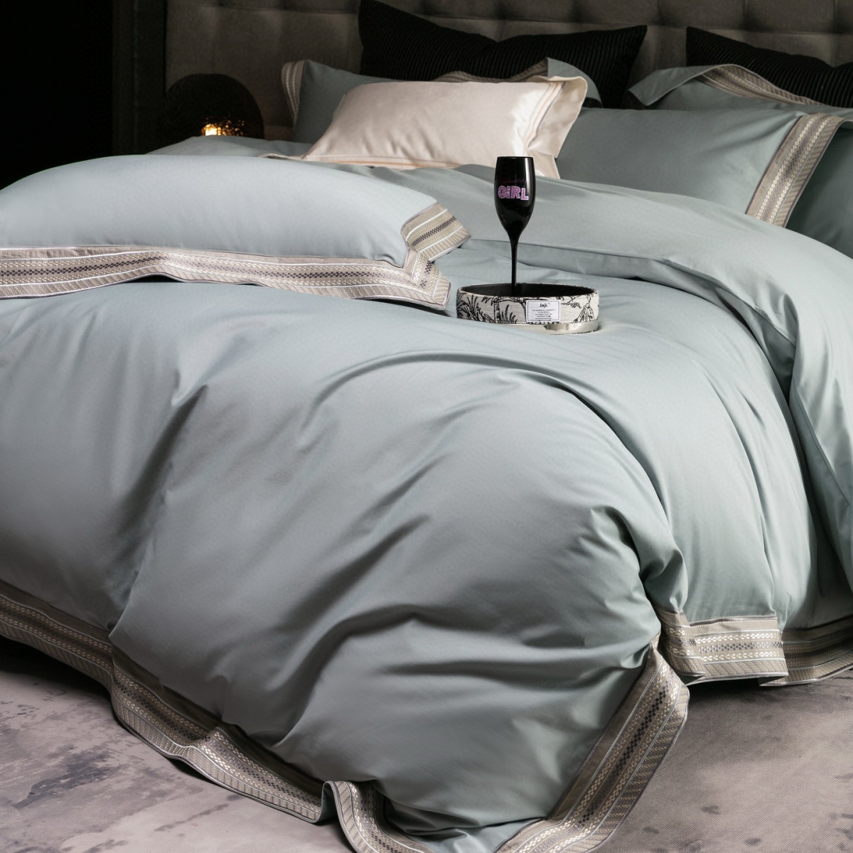 Кручёная нить придаёт материалу дополнительную прочность и создаёт эффект премиального сияния. Добавление шёлка усиливает тактильные ощущения: ткань остаётся прохладной на ощупь, но тёплой в объятиях, а её уникальная способность подстраиваться под тело делает отдых особенно комфортным.